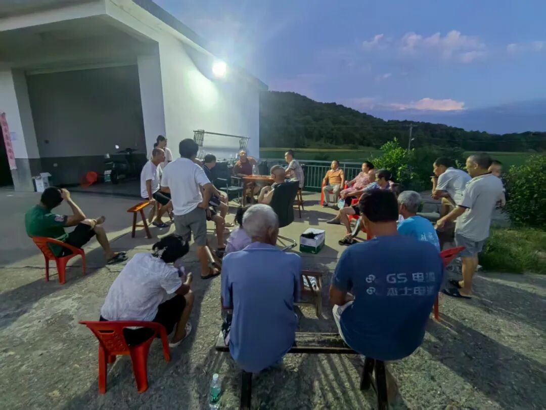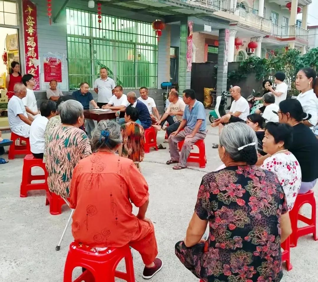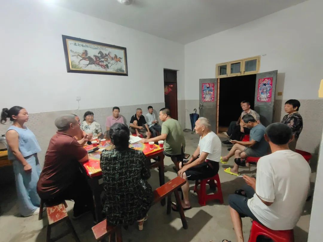 7月31日傍晚,在洪源村善仁组村民洪普年的庭院内,村民代表聚集在此,为即将开工的新农村点建设商量着好办法,共话村庄发展。
