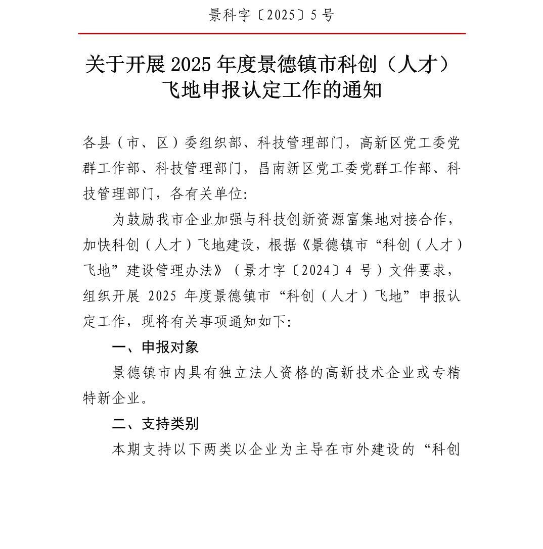 关于开展2025年度景德镇市科创(人才)飞地申报认定工作的通知(景科字〔2025〕5号).pdf