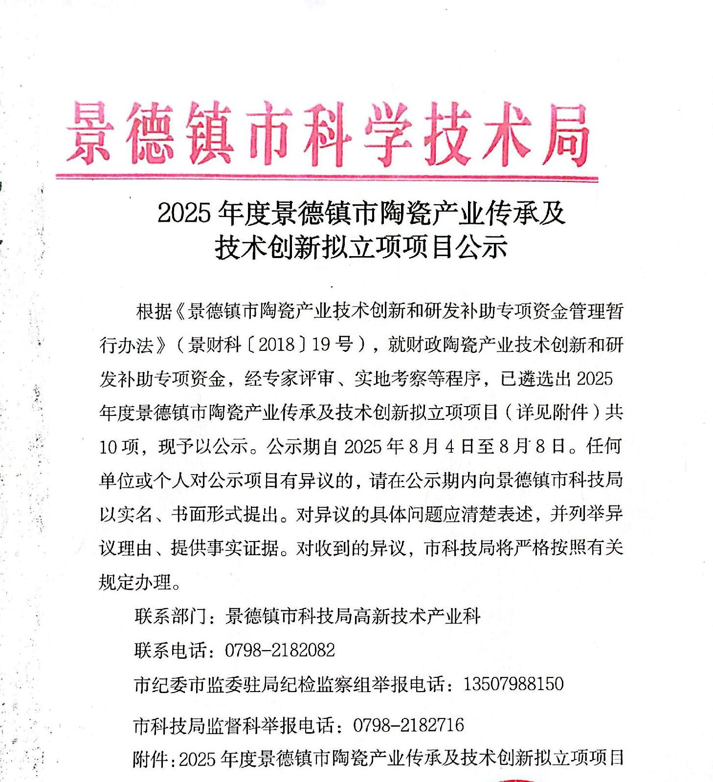 2025年度景德镇市陶瓷产业传承及技术创新拟立项项目公示
