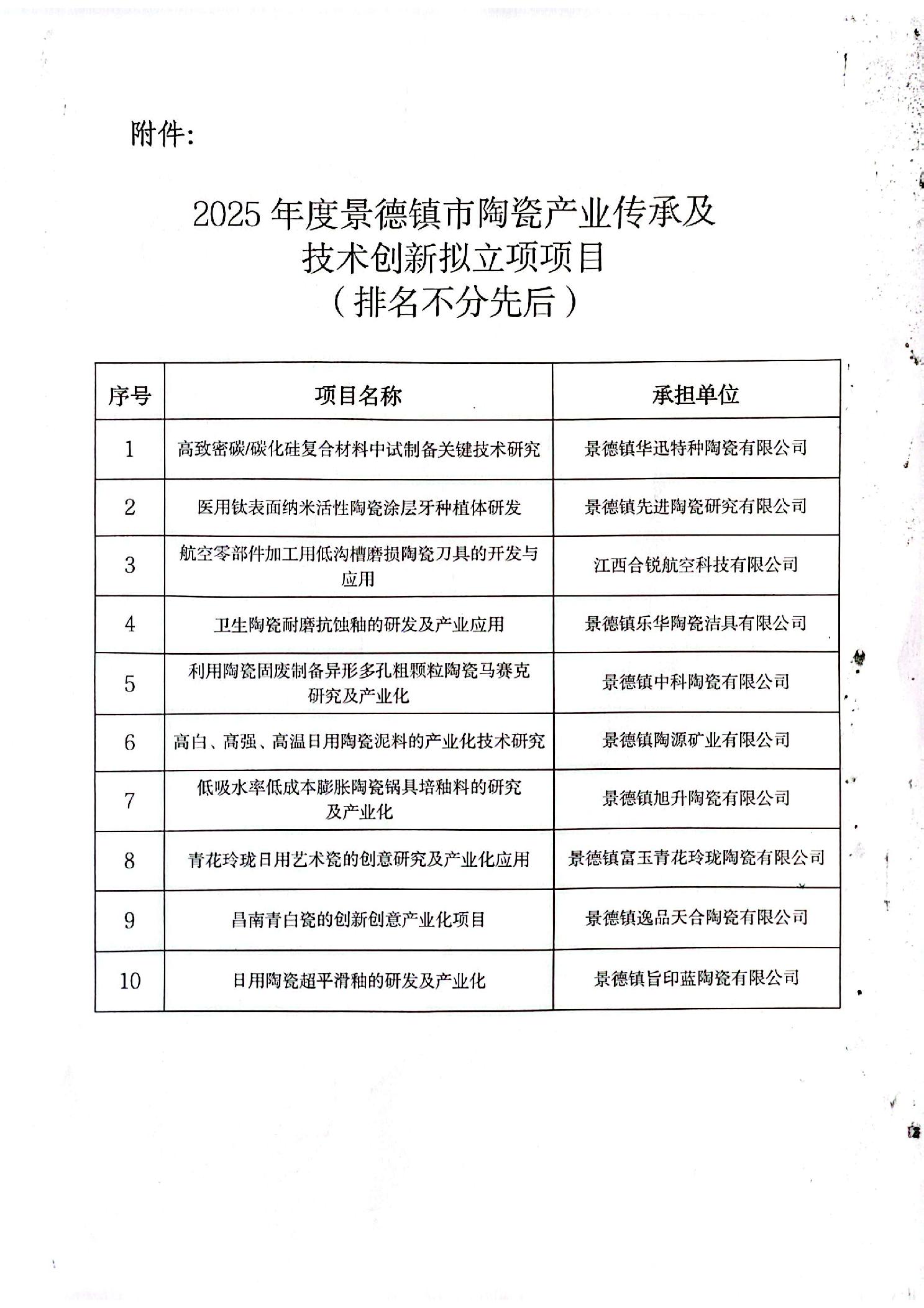 2025年度景德镇市陶瓷产业传承及技术创新拟立项项目公示.pdf