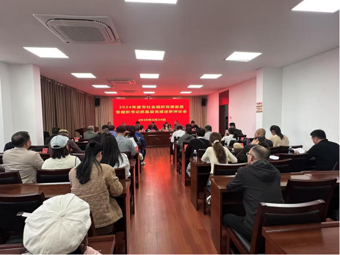 3月24日,市社会组织党委召开2024年度基层党组织书记抓基层党建述职评议会。市民政局分管领导沐守勇主持会议并讲话。市委社会工作部三科负责同志到会指导。社会组织党委成员全体成员、直属党支部书记及部分党员群众代表共40余人参加会议。