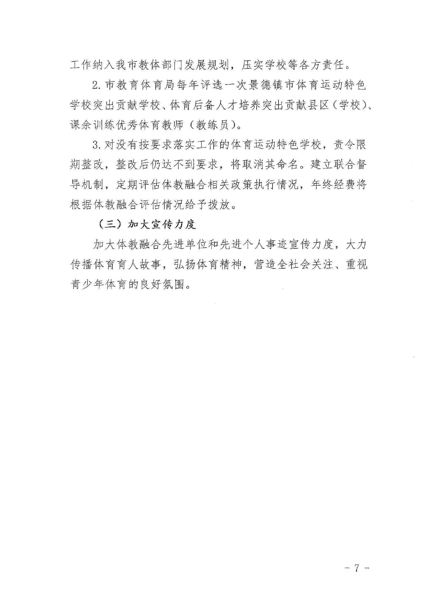 景德镇市加快体育后备人才培养推进体教融合发展的实施方案