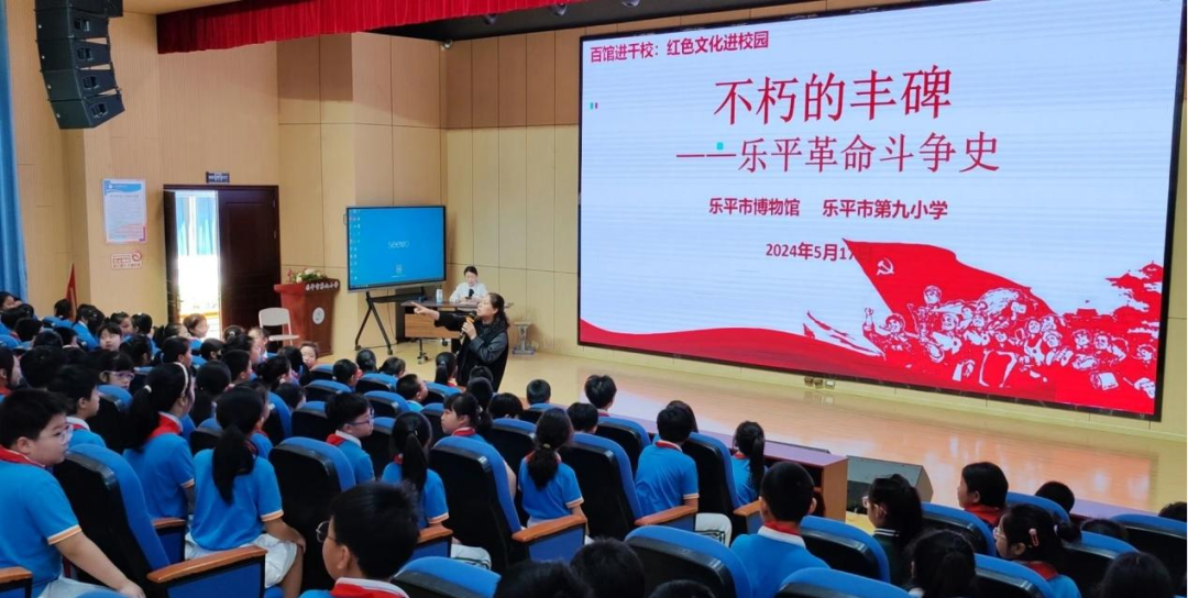 5月17日,乐平市博物馆携手乐平市第九小学共同举办了以“百馆进千校活动:红色文化进校园”为主题的文化交流活动,本次活动分为文博知识讲座和参观流动展览《洎水珍萃-乐平历史文化文物展》《不朽的丰碑-乐平革命史迹展》两个环节,通过馆校合作的形式,为孩子们提供一个近距离接触乐平历史、了解乐平本土文化的机会。