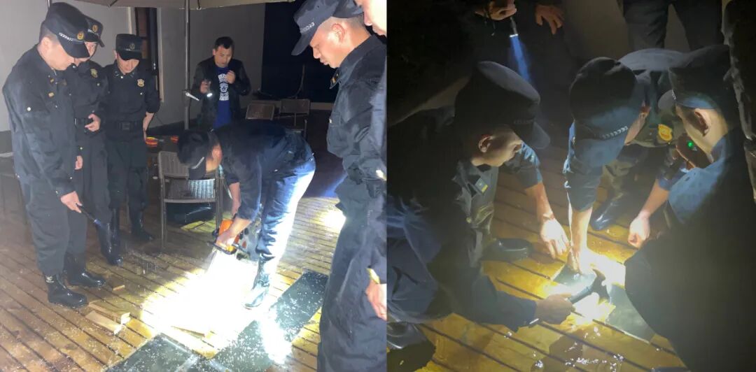 4月12日凌晨1时06分接到救援电话,三宝村宝莱溪度假酒店突发内涝险情,景德镇市森林消防支队迅速集结队伍,火速抵达现场,发现酒店大堂、走廊、电梯和部分房间都有大量积水,已经没过脚踝,且水位仍在不断上升。经排查,发现露台木地板采用封闭式铺设,下方排水口出现堵塞,积水无法排出,导致雨水倒灌。现场指战员迅速调整部署制定破拆方案,一组使用油锯对木地板进行精准切割,二组使用水泵紧急排水,队员们冒雨作业。经过1个多小时紧急抢险,成功打开排水通道。凌晨2时36分险情彻底排除。