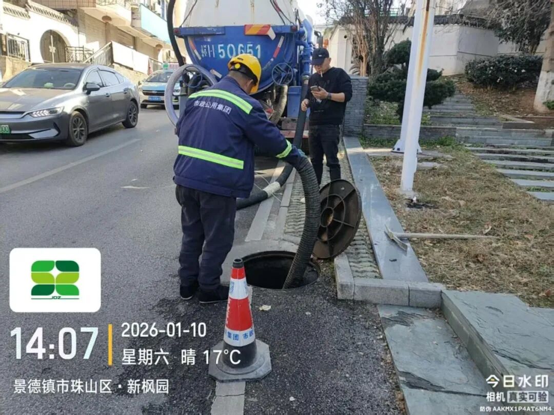 1月8日,据森林社区工作人员反应,瓷都大道紫薇路路口一污水井堵塞溢流。市政公用集团立即组织养护人员前往现场开展清污疏通,现已处理完毕,效果如下图所示。