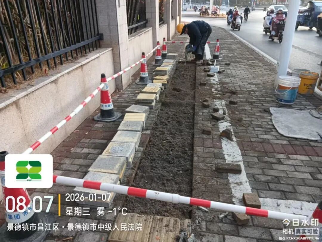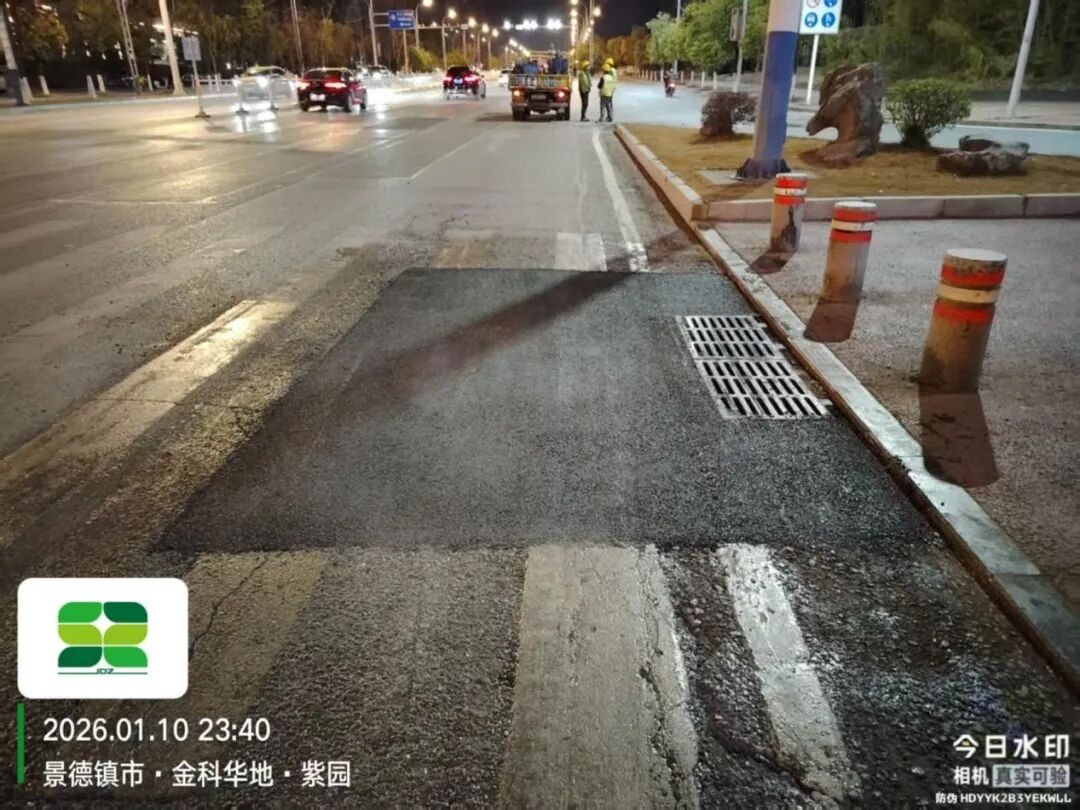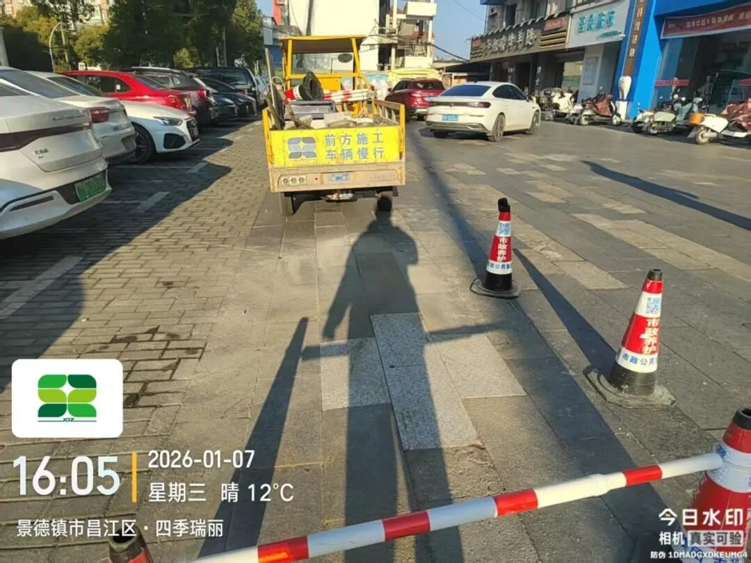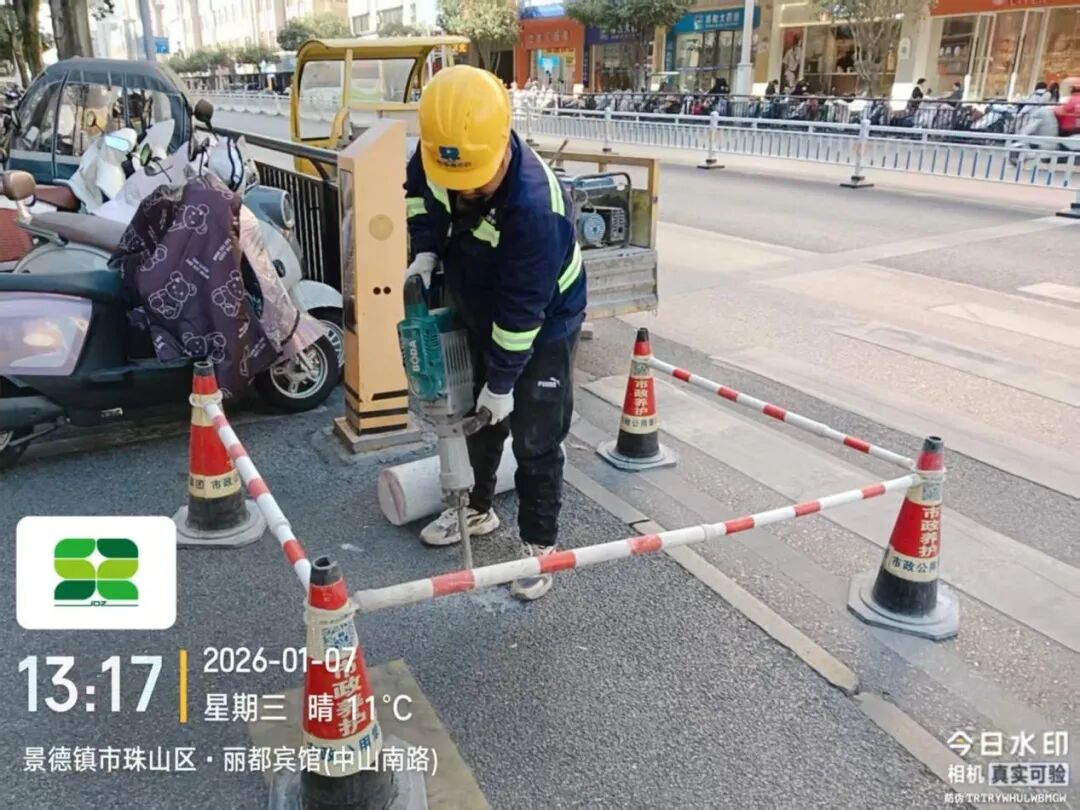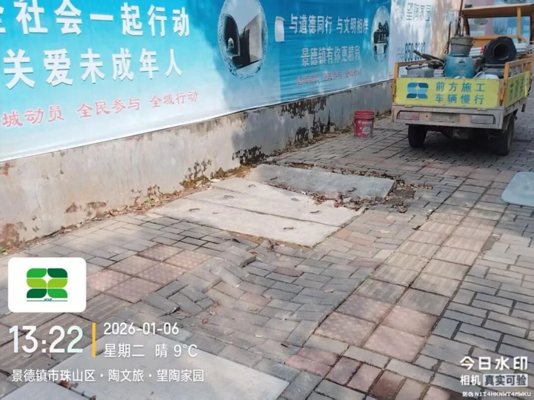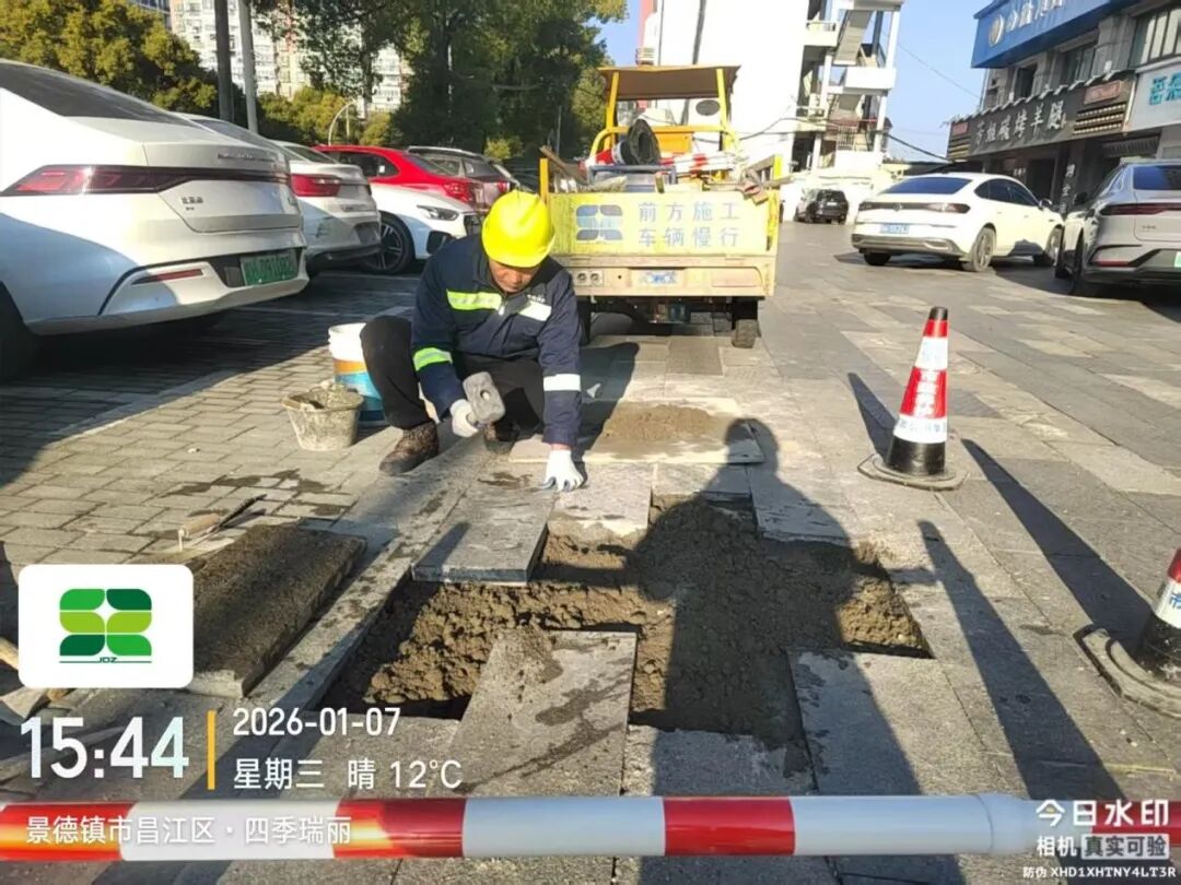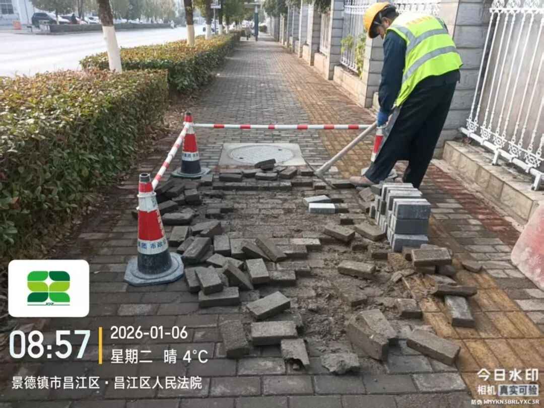 1月6日,养护一线巡查发现,昌江大道望陶家园段一供电盖板破损下沉,市政公用集团及时开展修复,现已处理完毕,效果如下图所示。