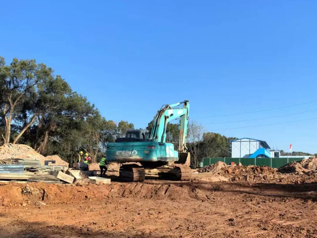 施工动态:目前正在进行项目前期工作(项目部临建、施工围挡、园内树木移栽、报告厅基坑开挖、入场道路、钢筋加工棚搭设、雨水管道铺设)等施工