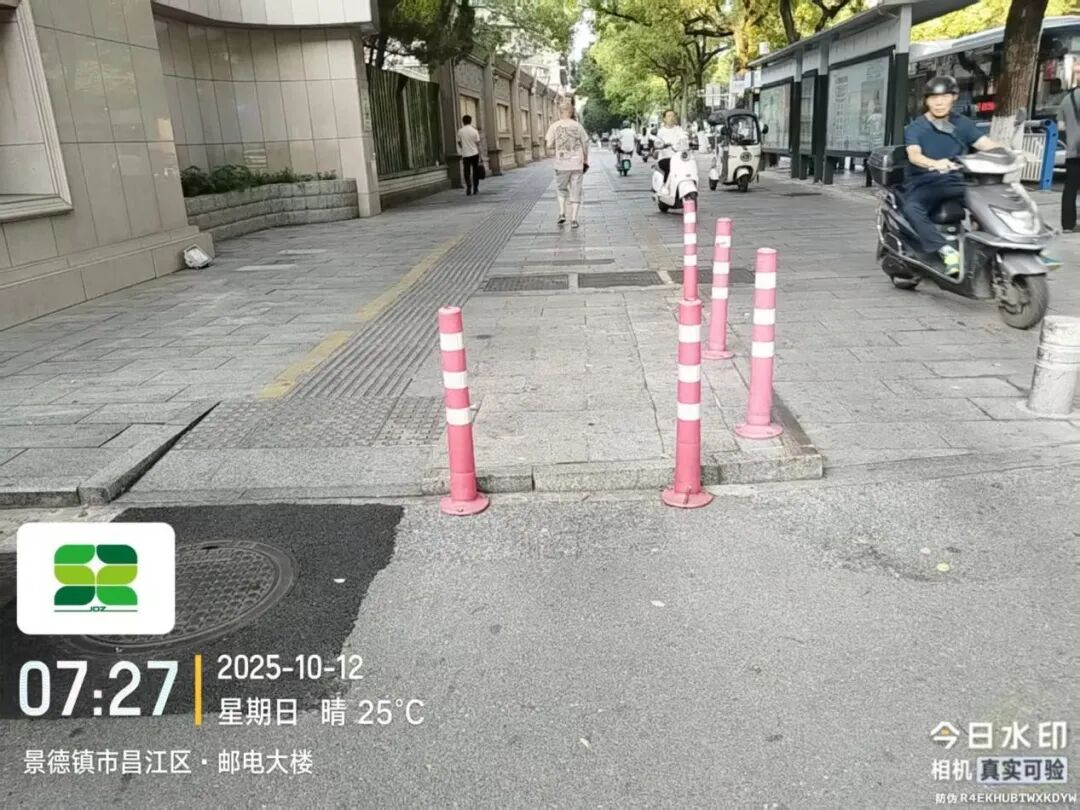 问:珠山大道邮电大楼旁人行道一过道较窄导致通行不便,望有关部门及时改善。