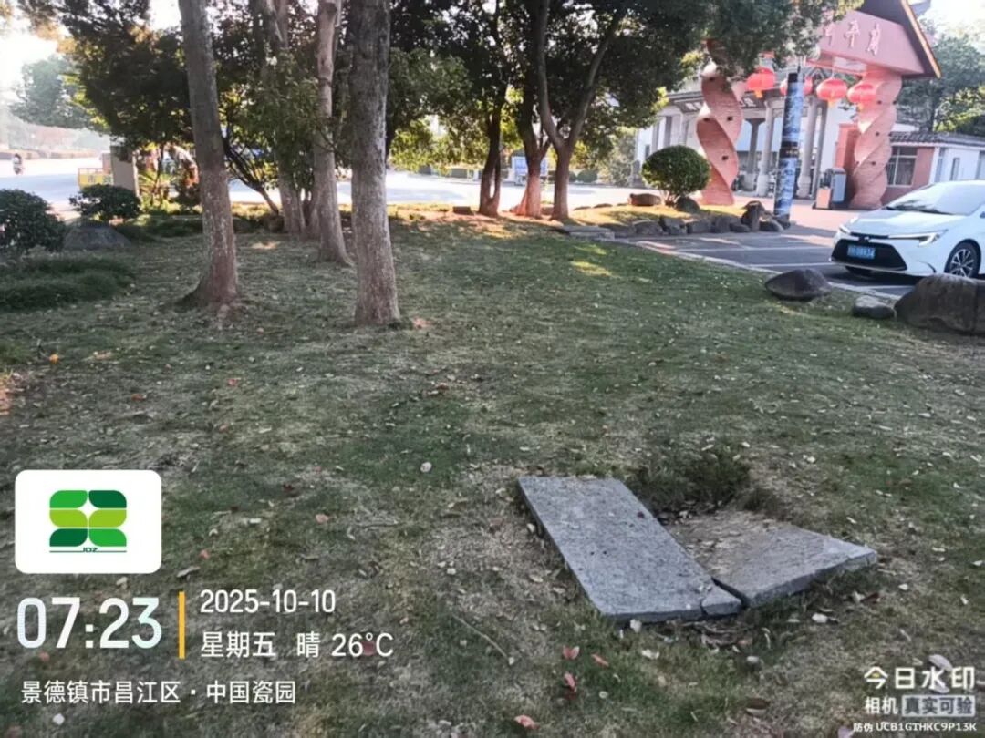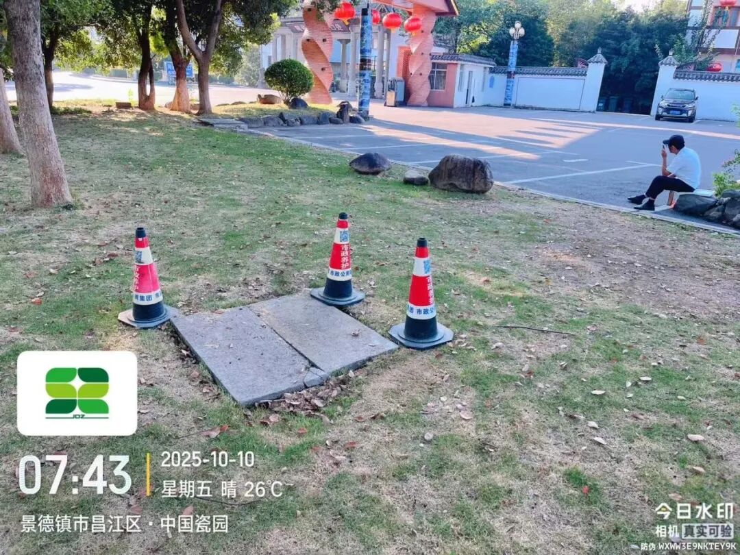 10月10日,据一市民反映,迎宾大道中国瓷园段绿化带一管线井盖下沉,且存在安全隐患,市政公用集团及时排查原因,并对井盖进行恢复,现已处理完毕,效果如下图所示。