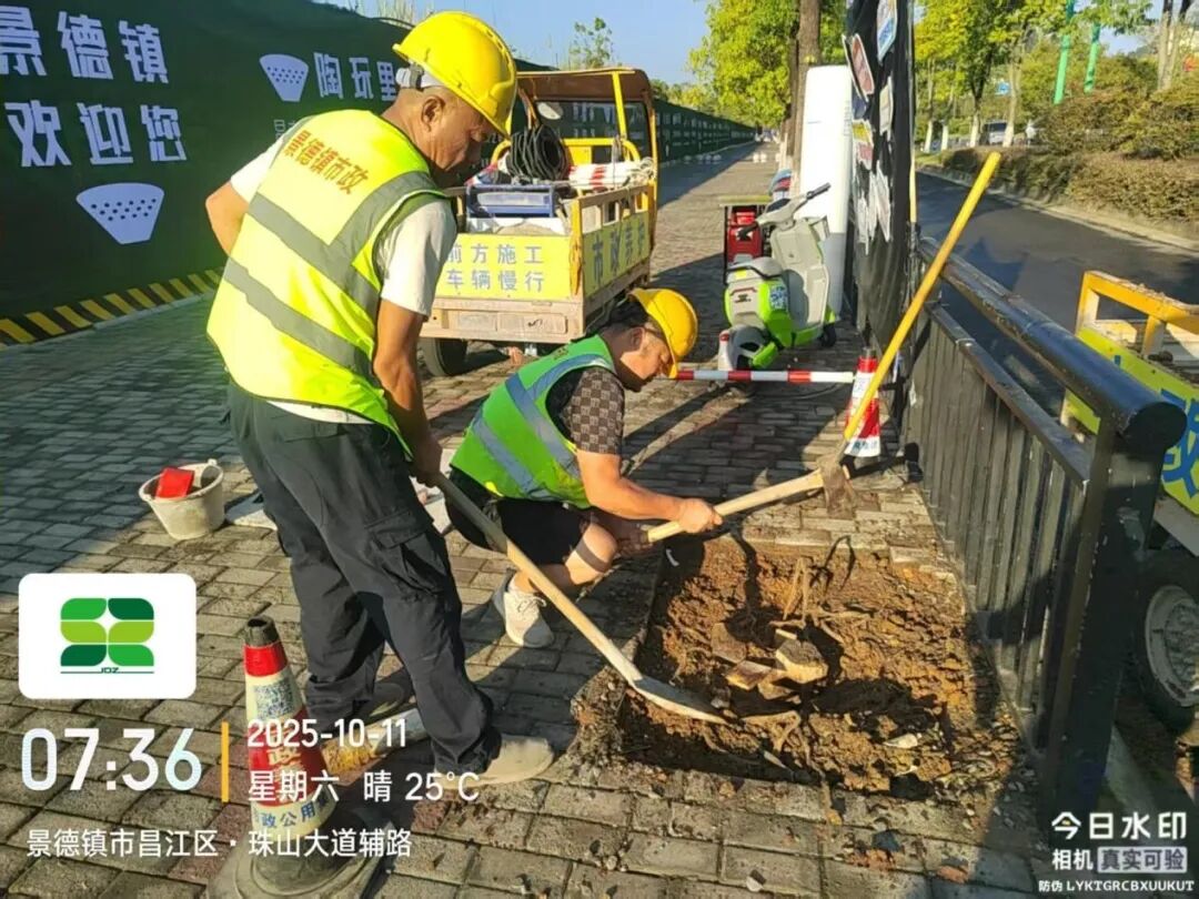 (图为10月14日养护一线开展陶瓷博物馆段市政设施养护)