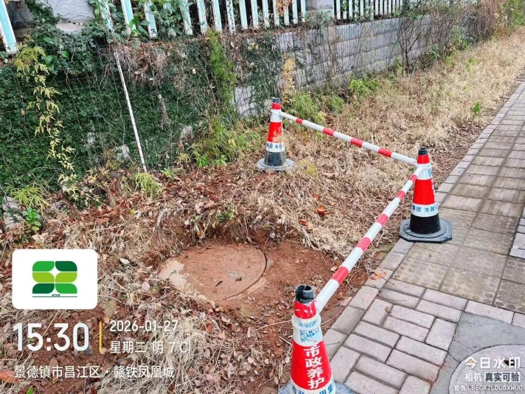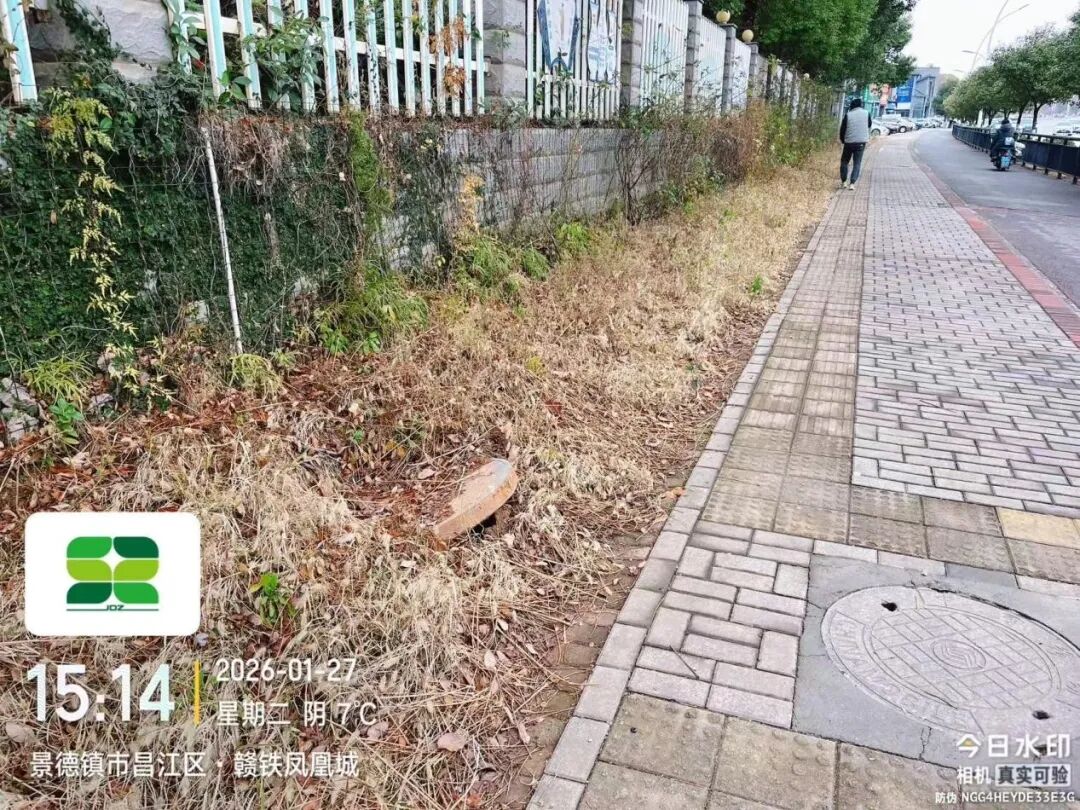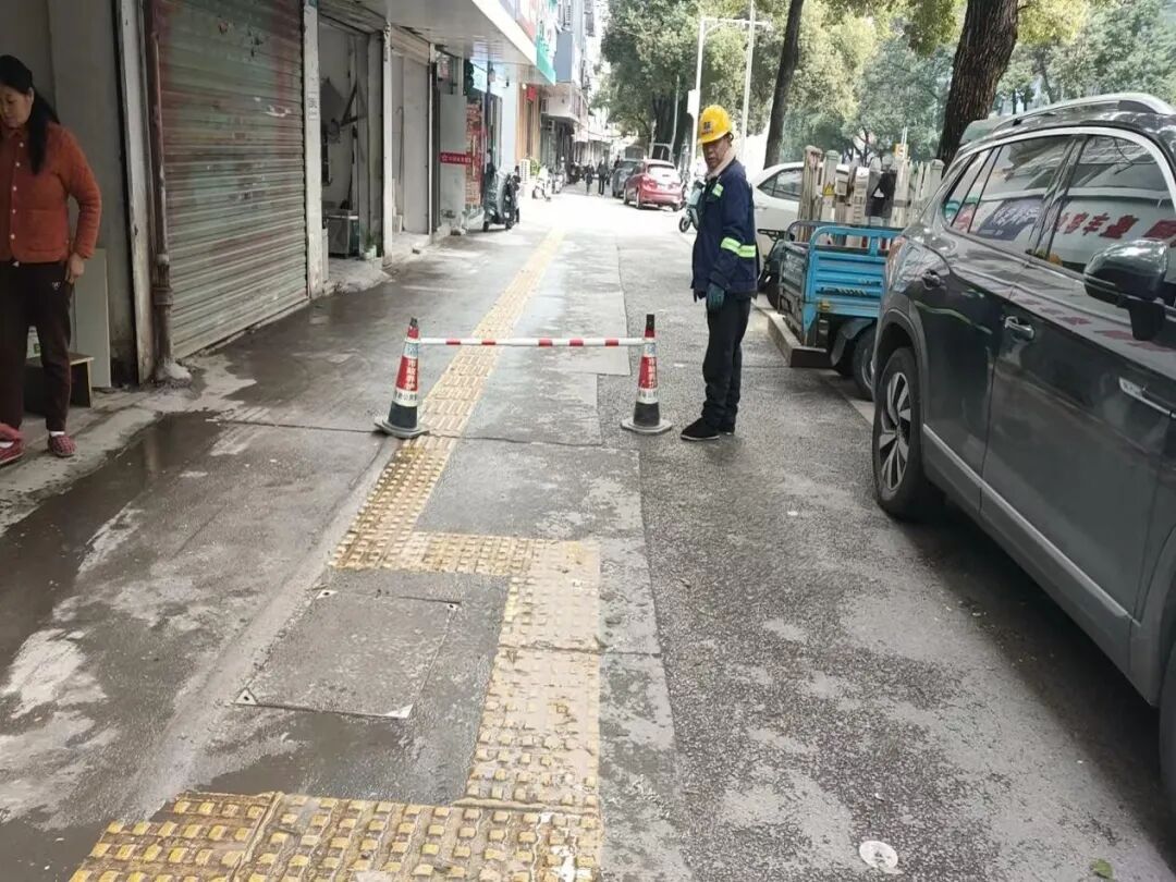 1月27日,养护一线巡查发现,紫晶路江西银行对面人行道一管线井下沉位移。市政公用集团立即组织养护人员前往现场开展修复,现已处理完毕,效果如下图所示。