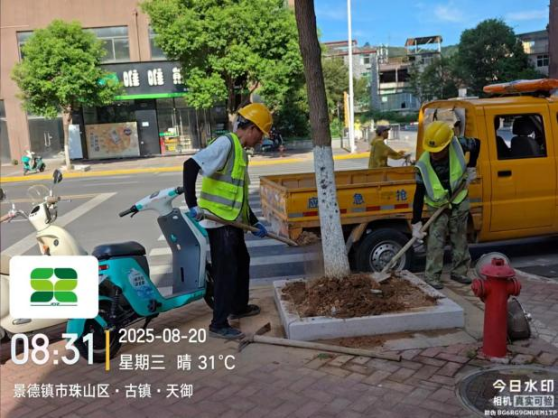 重点项目快推进,升级核心片区“品质内涵”。聚焦文化核心片区关键节点品质提升,中心高效推进四大改造项目,让片区环境焕发新颜。一是口袋公园与高架下草坪修复。完成瓷都桥头口袋公园220㎡草坪修复,出动6人次;完成金岭大道高架桥下220㎡草坪修复,投入5人次作业,两项工程均已完工,后续将强化浇水养护,确保草坪存活长势。二是古镇天御树池改造。高效完成62株树木树池改造,挖掘4株树木树桩,为4株树木树池铺设烧火板,期间投入男工19人次、女工4人次,调用切割机、电钻、三轮车、发电机各4台,项目已顺利完工。三是景德大道陶阳新村人行道改造。一期工程进入收尾阶段,完成52.5㎡土方开挖、210㎡场地平整及210㎡人行道块料铺设;二期新增项目正推进场地平整,预计9月2日前后完工,施工期间投入男工39人次、女工7人次,使用挖土机、装土机各4台及洒水车1辆。