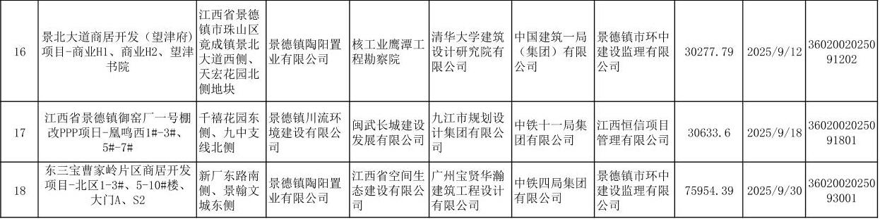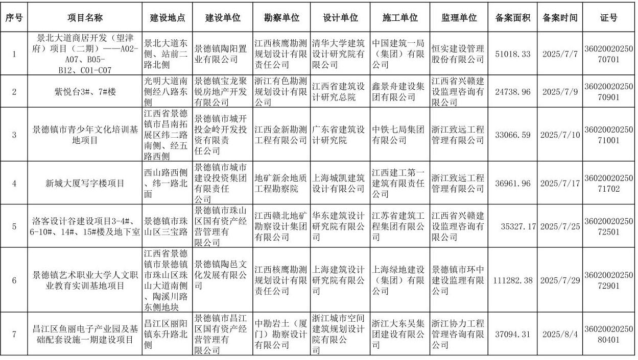 2025年第三季度工程竣工备案情况