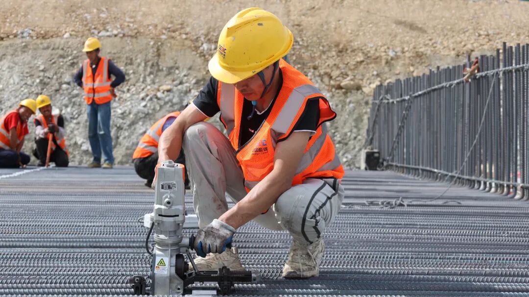 工人正在捆扎混凝土钢筋