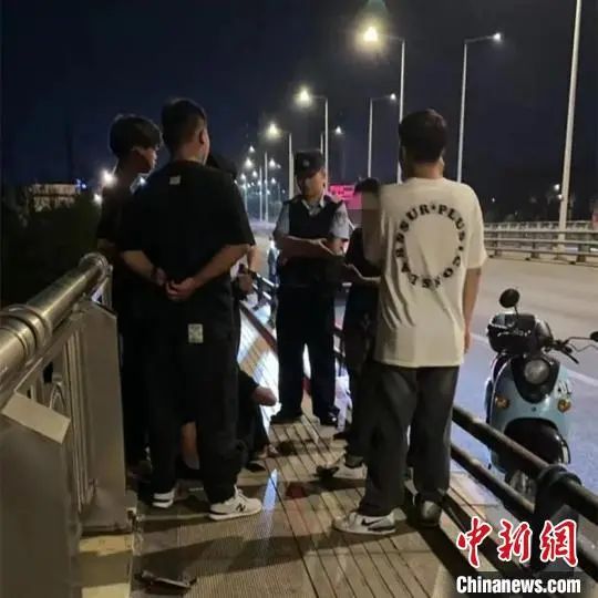 程子勋回忆,晚上10点30分左右,他和方仁翔、徐达、石耀竣、黄浩4名同学打完球骑车回家的路上,经过白鹭大桥看见一名30岁左右的男子坐在桥上,“他看起来比较瘦小,坐在桥上鞋也没穿,低着头抹眼泪,我们就感觉情况不对。”