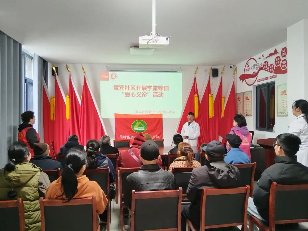 3 月 4 日,里村街道童宾社区新时代文明实践站开展“文明实践我行动”学雷锋爱心义诊活动,提升社区群众的幸福感和获得感,打造更加温馨、和谐、健康的社区环境。