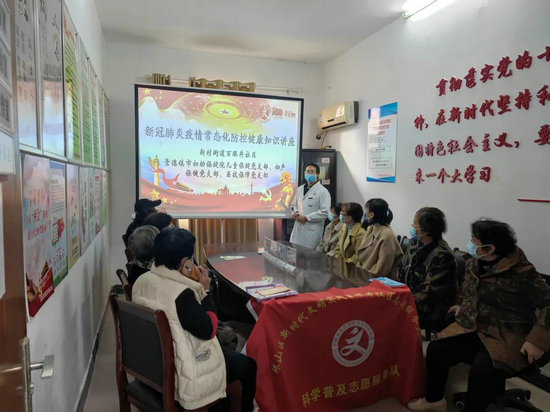 市妇幼保健院党员志愿者为新村街道百眼井社区居民讲授近期疫情防控政策