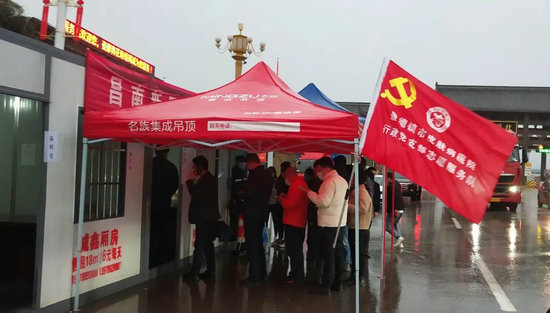 市卫生学校党员志愿者在高速路口西站开展志愿服务。