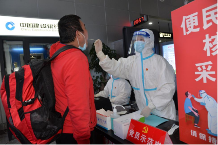 市第一人民医院党员志愿者在机场开展免费核酸检测服务。