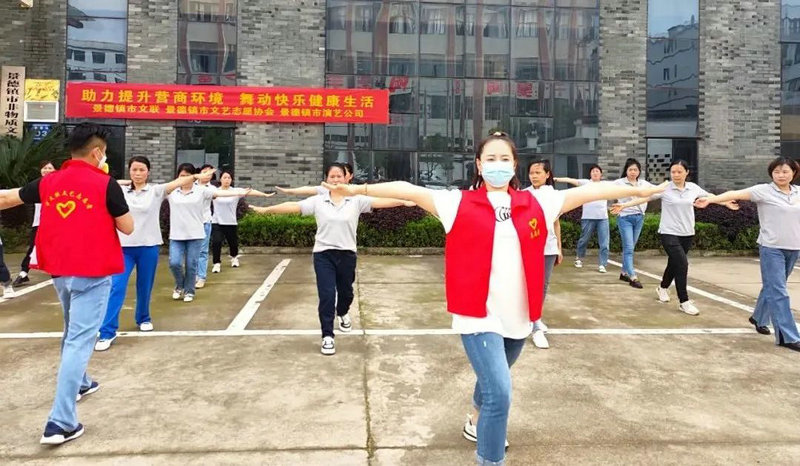 来到企业,在文艺志愿者们的耐心、细致的指导下,企业员工从不熟练,到动作娴熟、步调一致、队形整齐划一,在欢快的音乐带领下,大家舞动着矫健的身姿,享受着运动健身的乐趣,展现出良好的精神风貌。