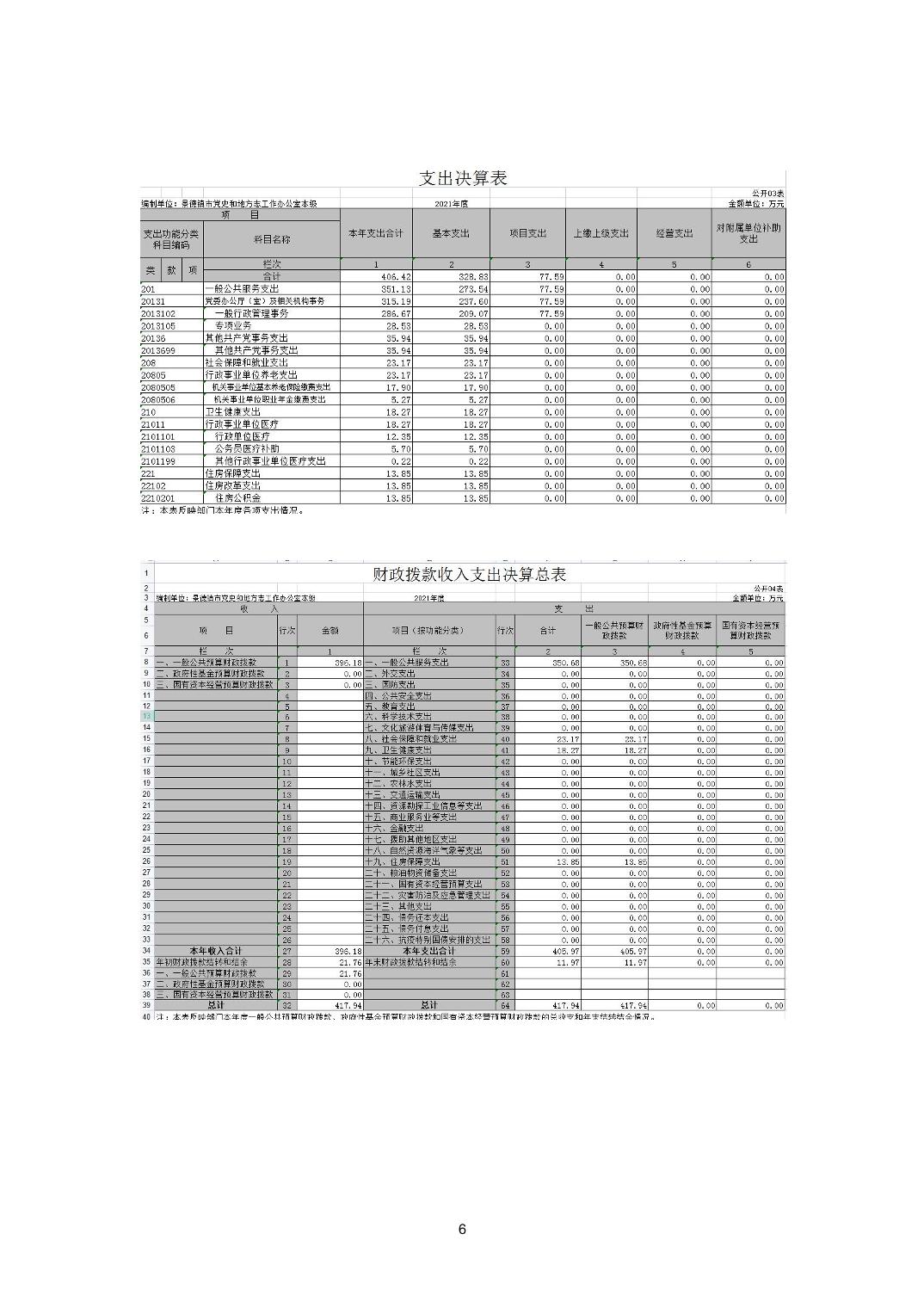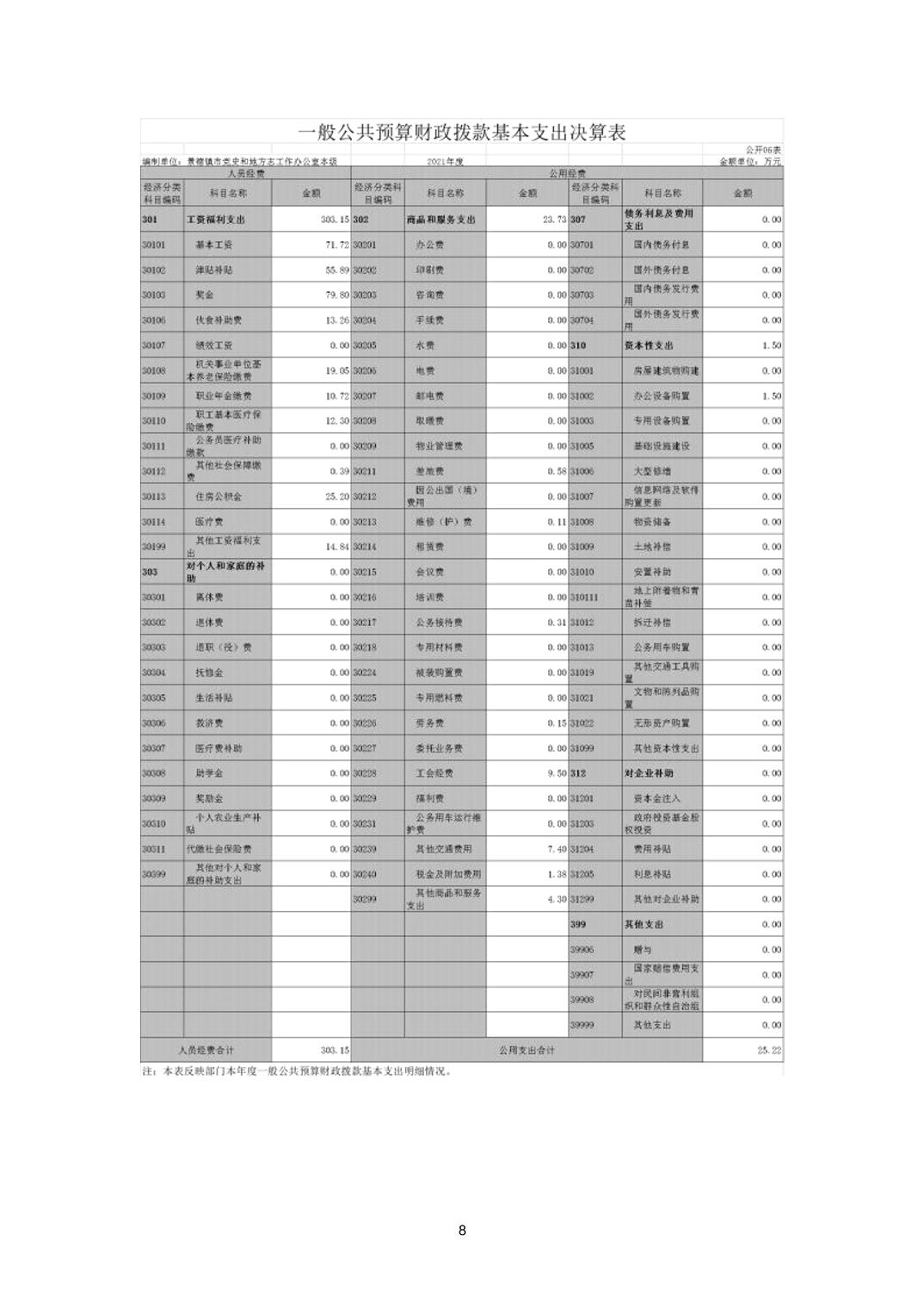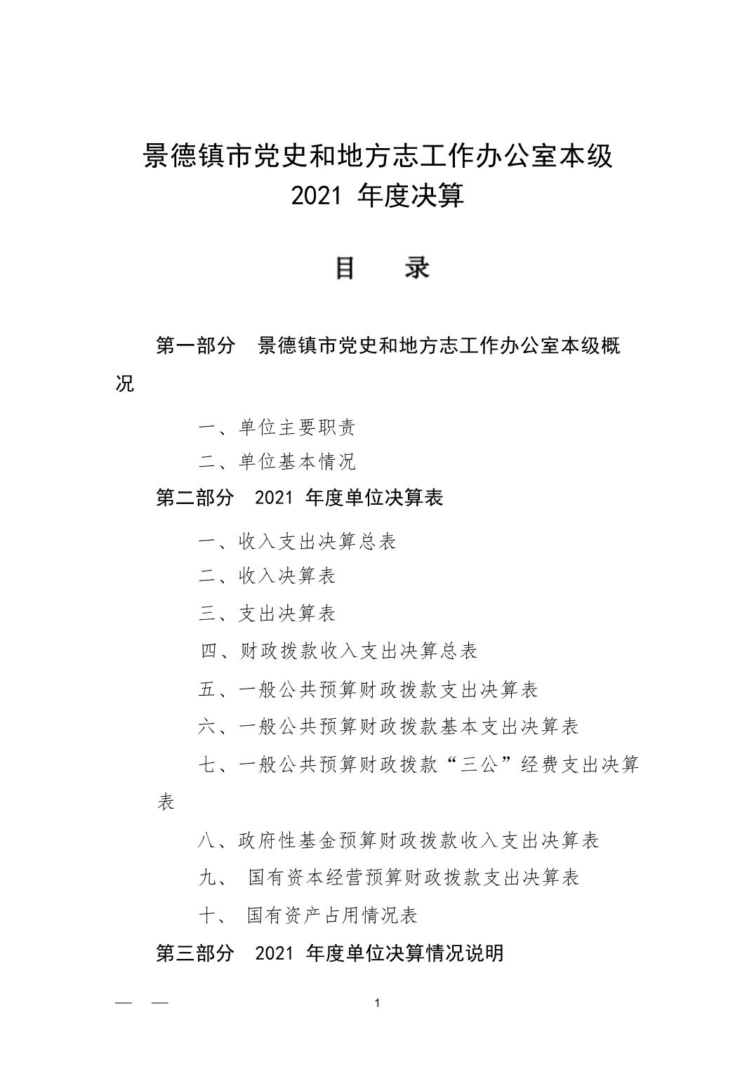 景德镇市党史和地方志工作办公室本级2021年度决算