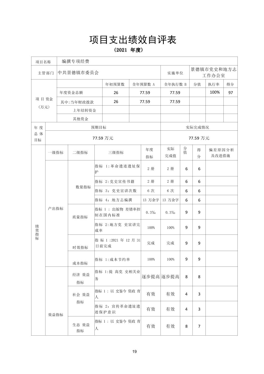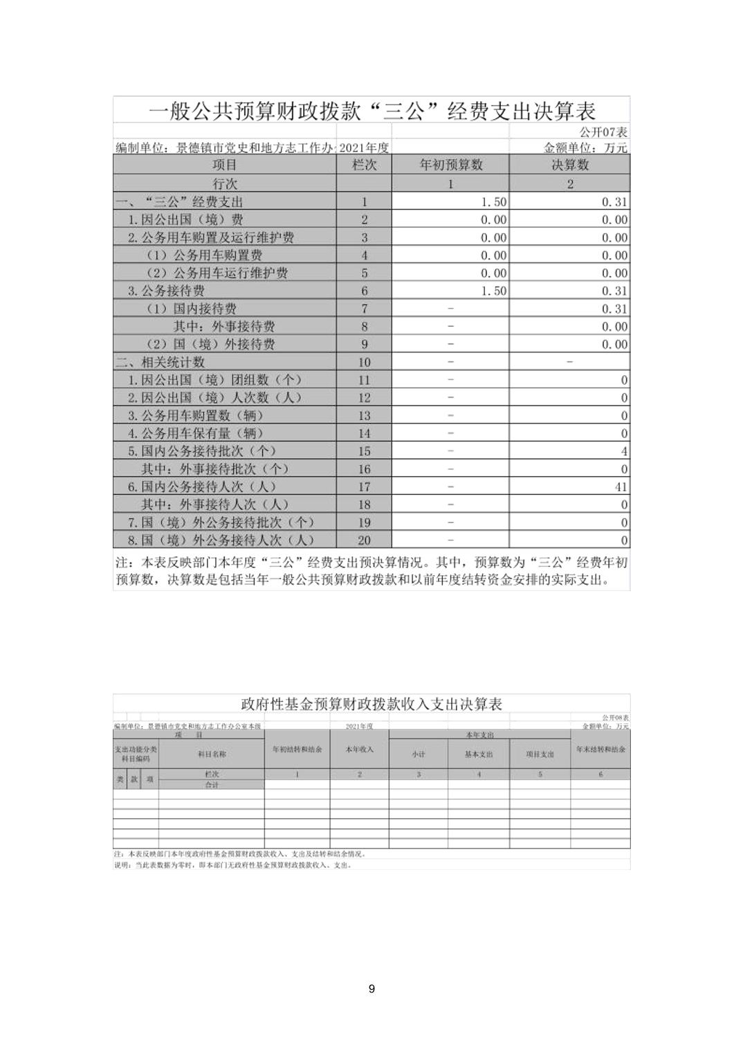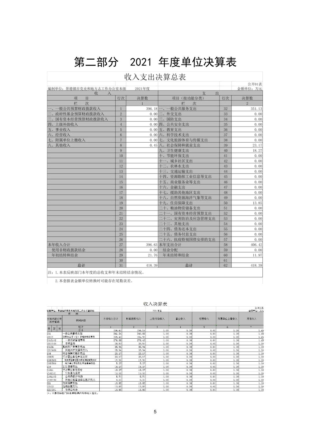 景德镇市党史和地方志工作办公室本级2021年度决算