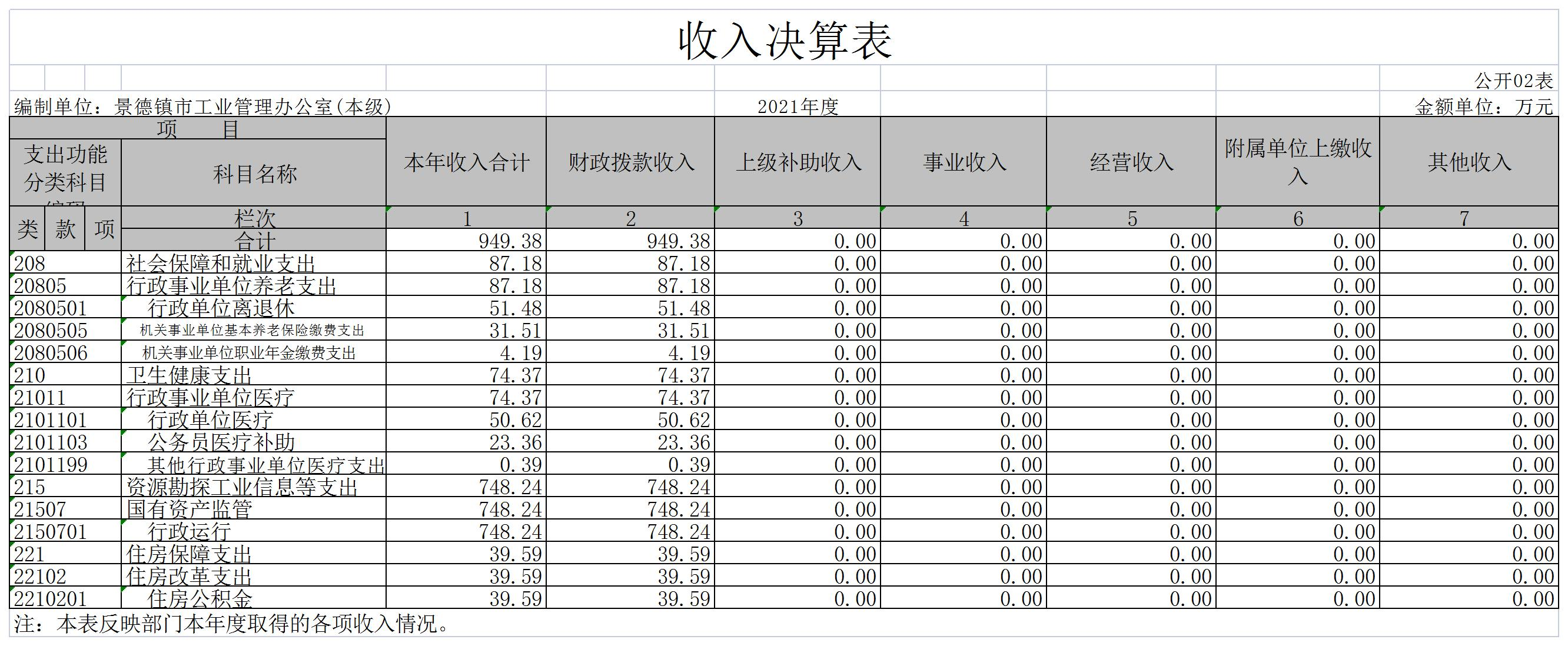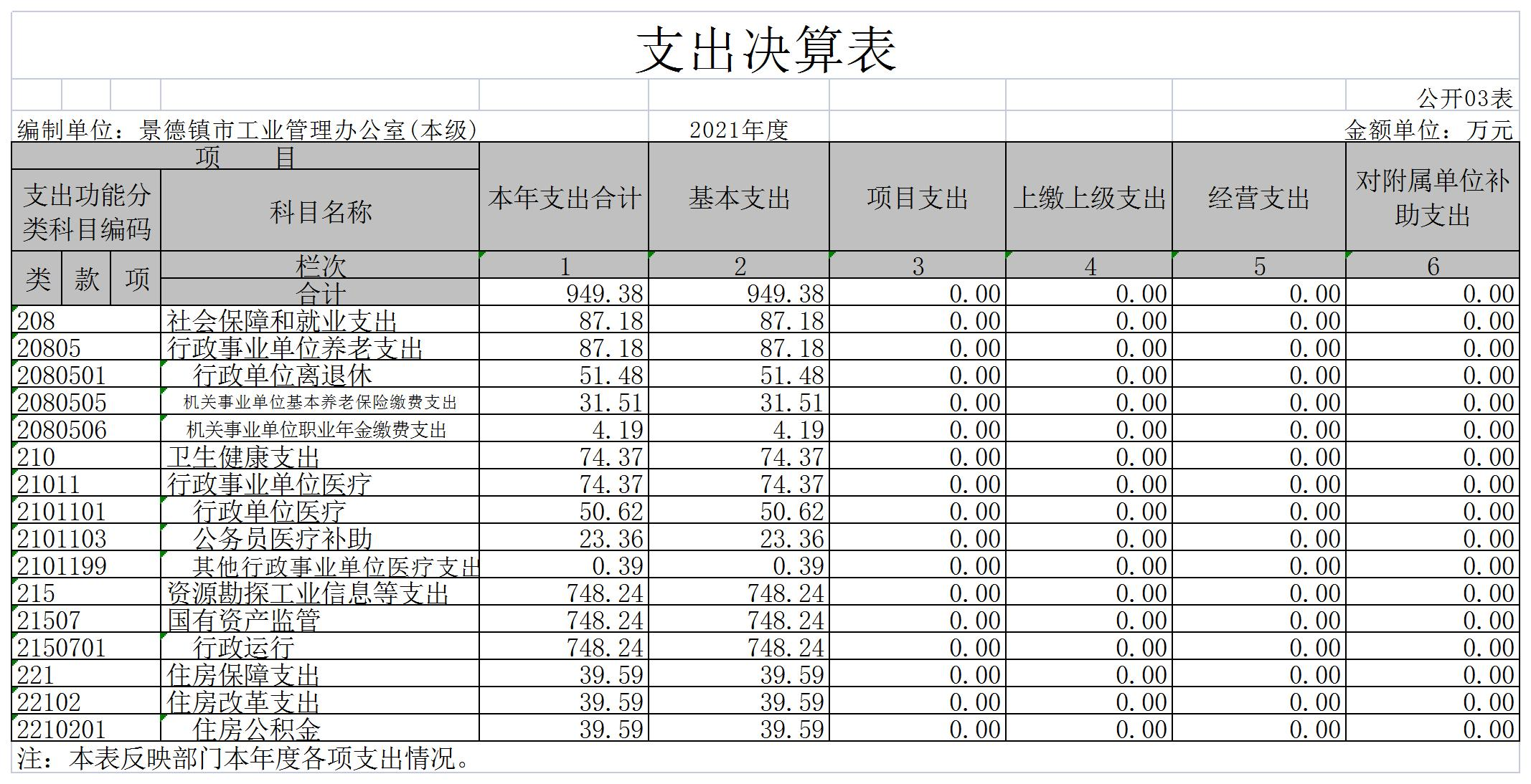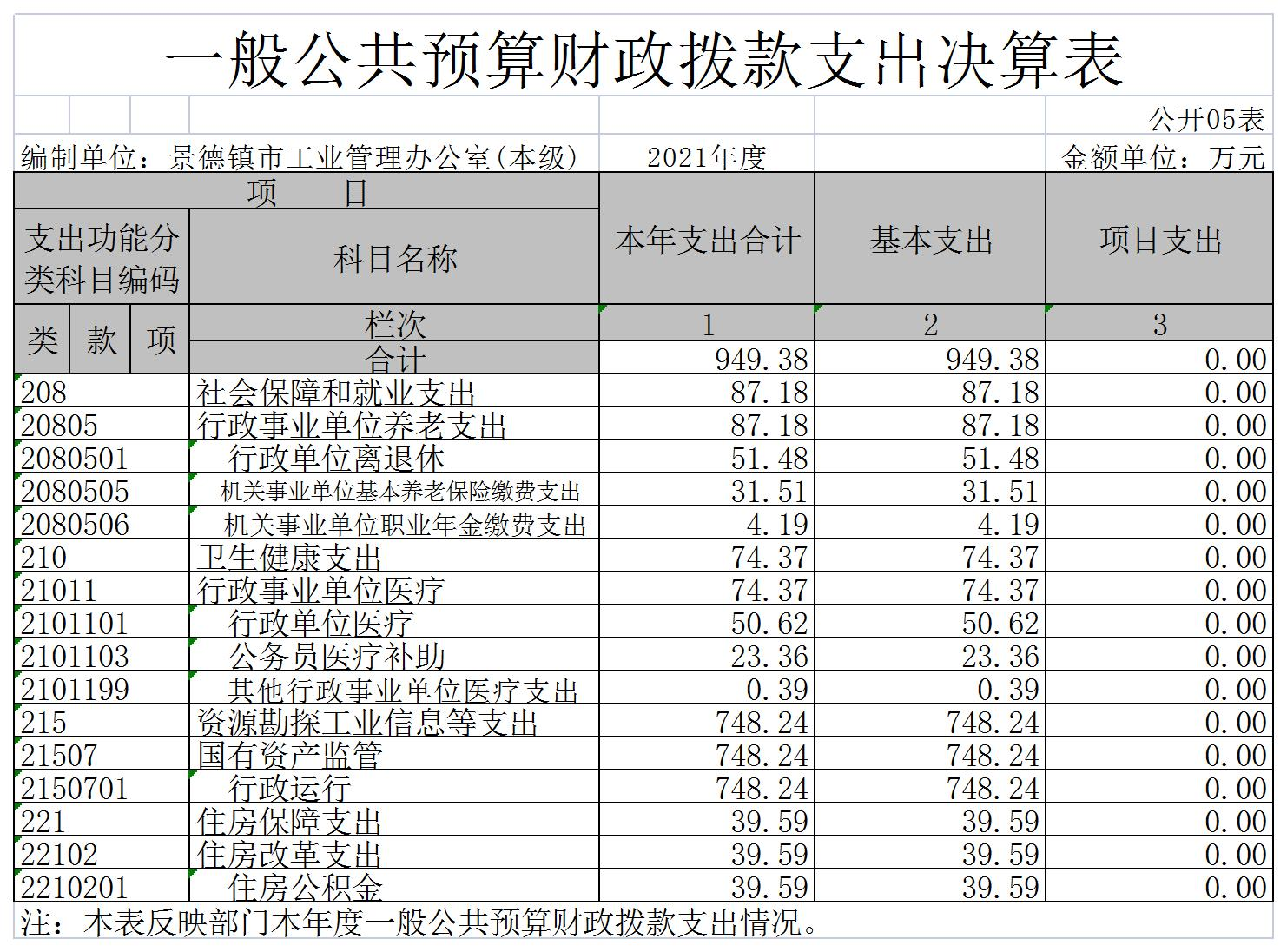 景德镇市工业管理办公室2021年度决算
