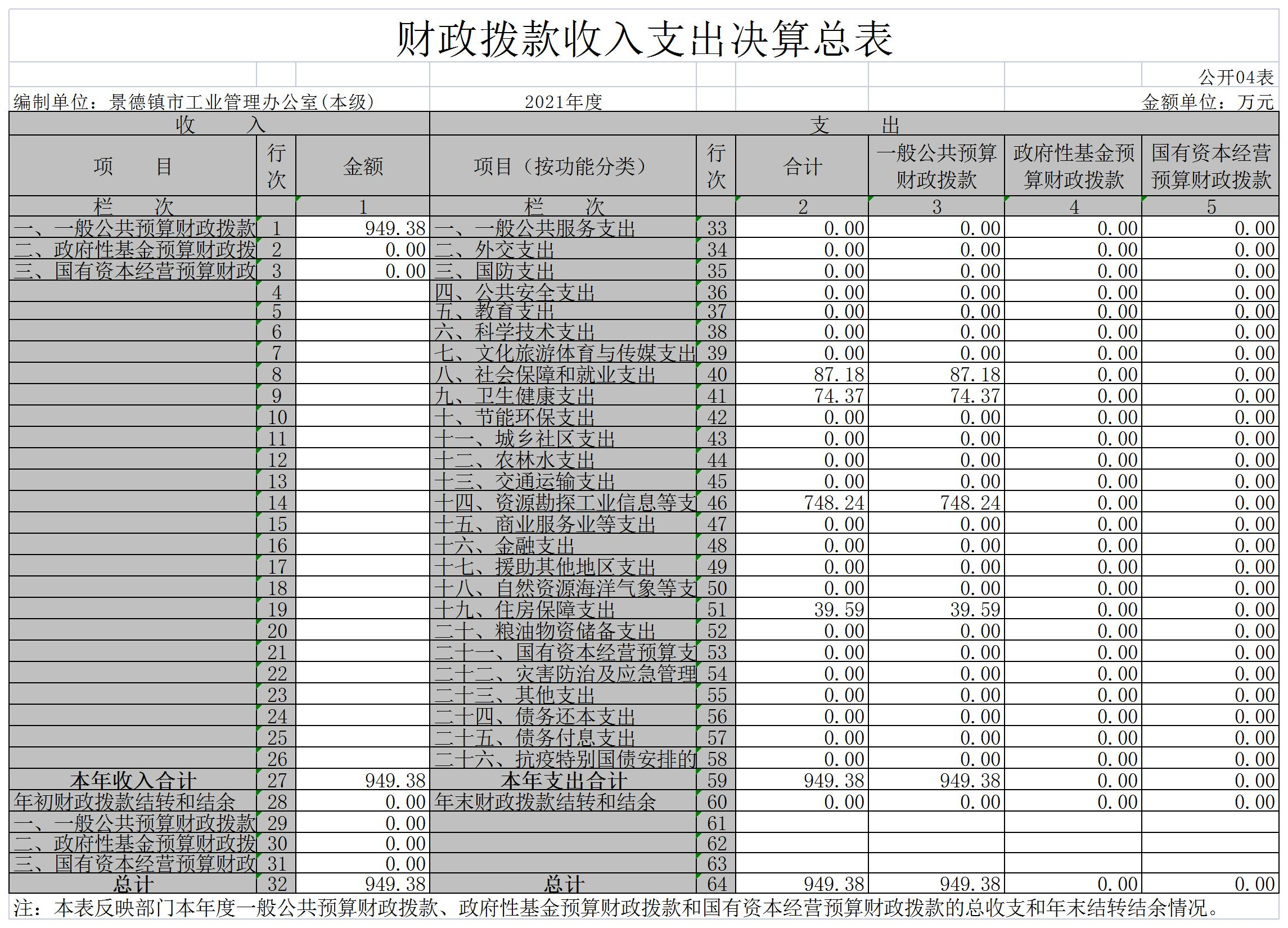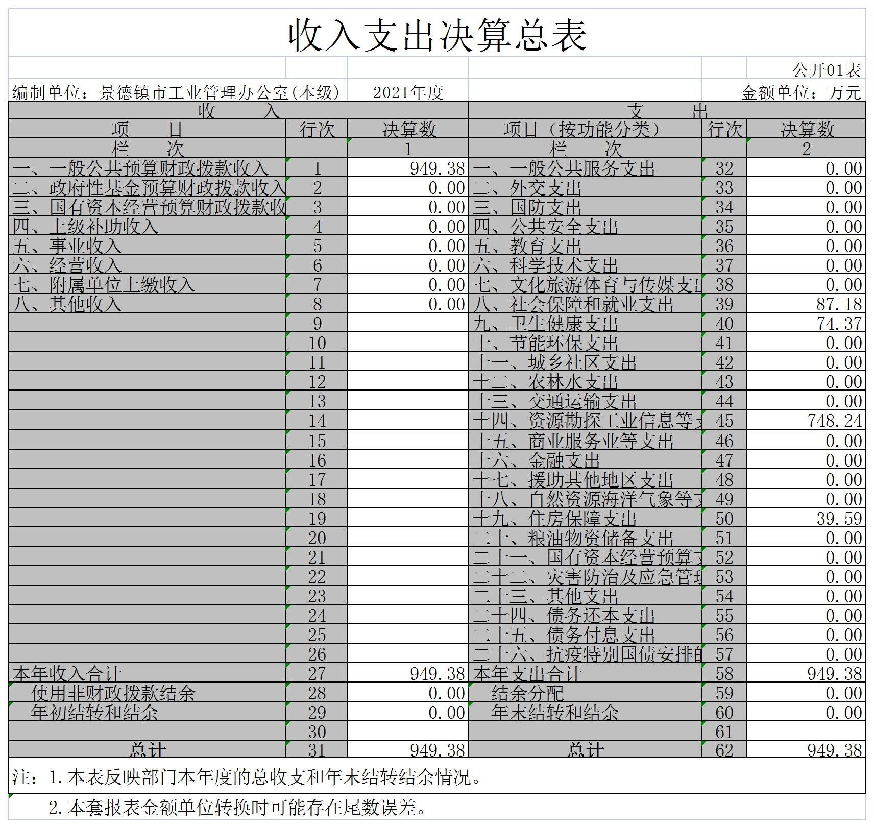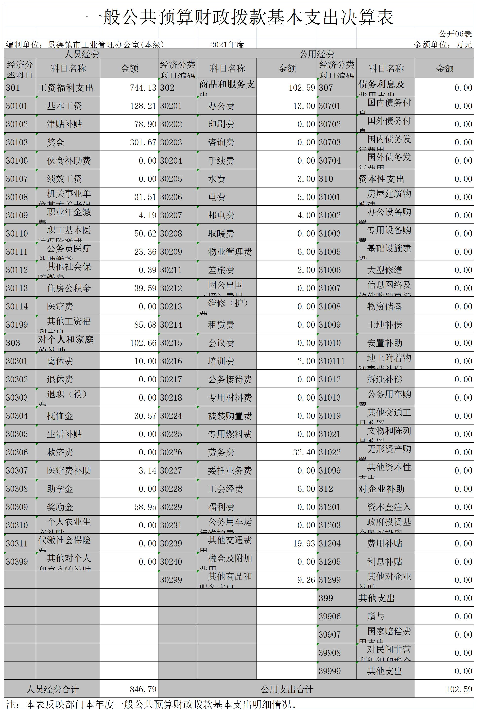 景德镇市工业管理办公室2021年度决算