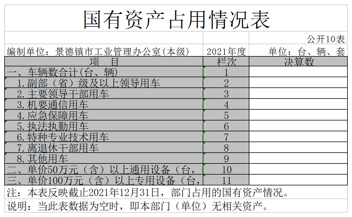 截止2021年12月31日,本单位国有资产占用情况见公开10表《国有资产占用情况表》。本单位无相关国有资产。