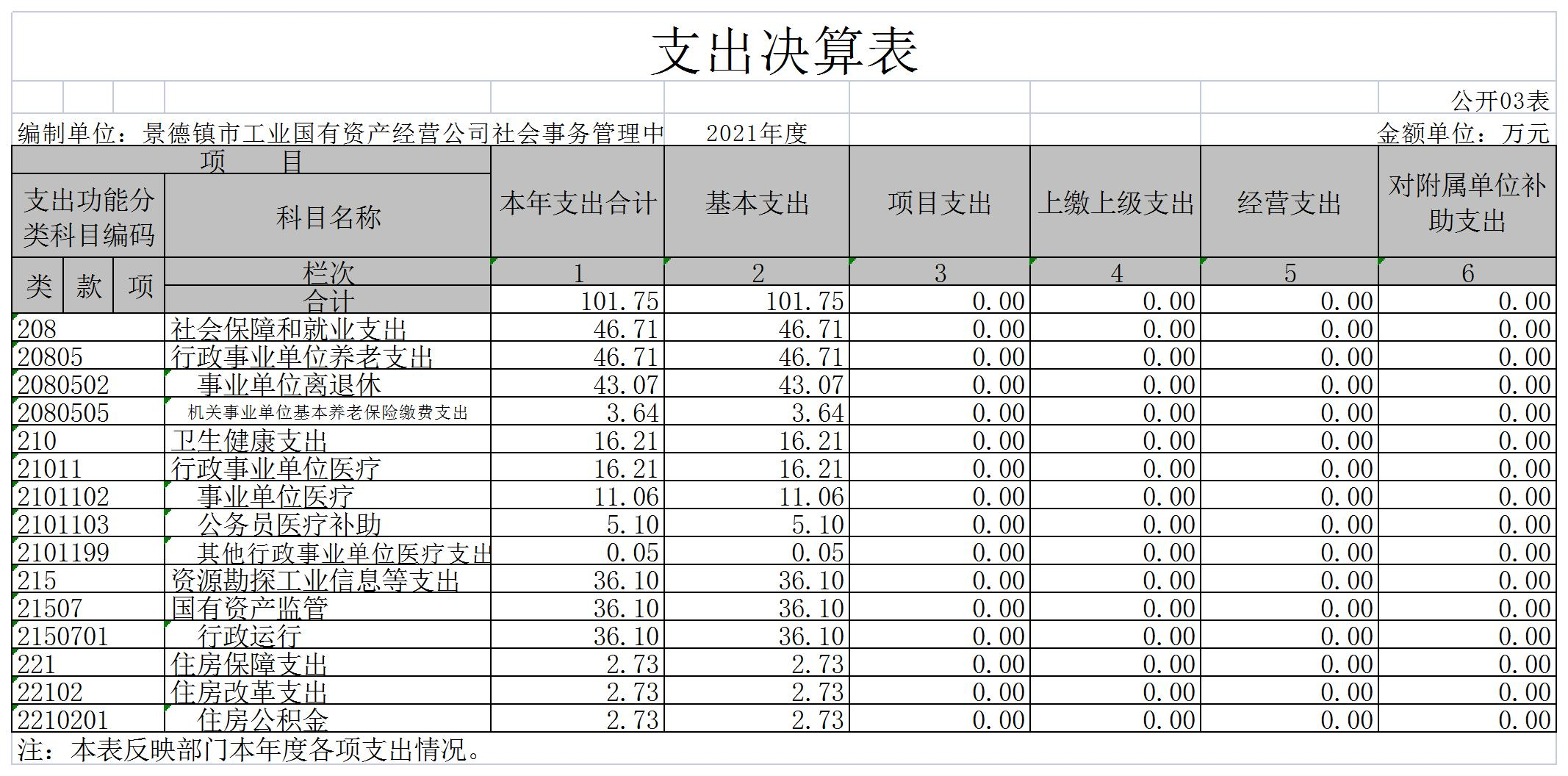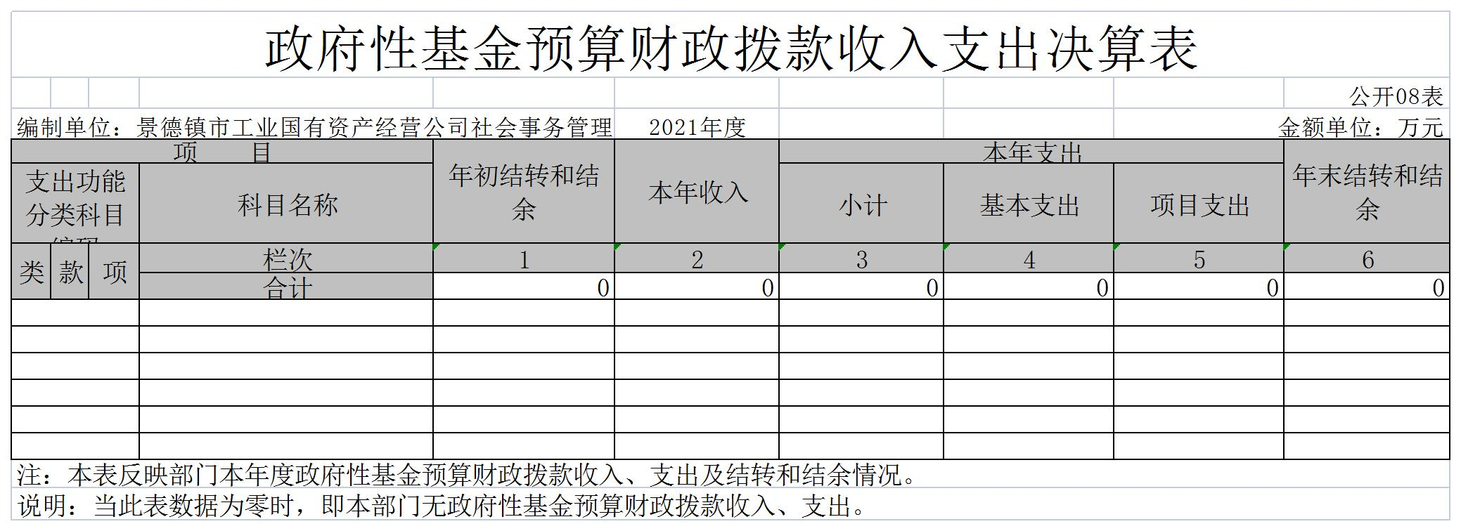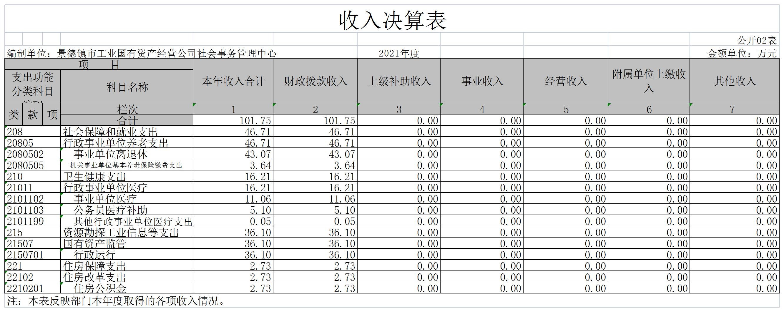 景德镇市工业国有资产经营公司社会事务管理中心单位2021年度决算