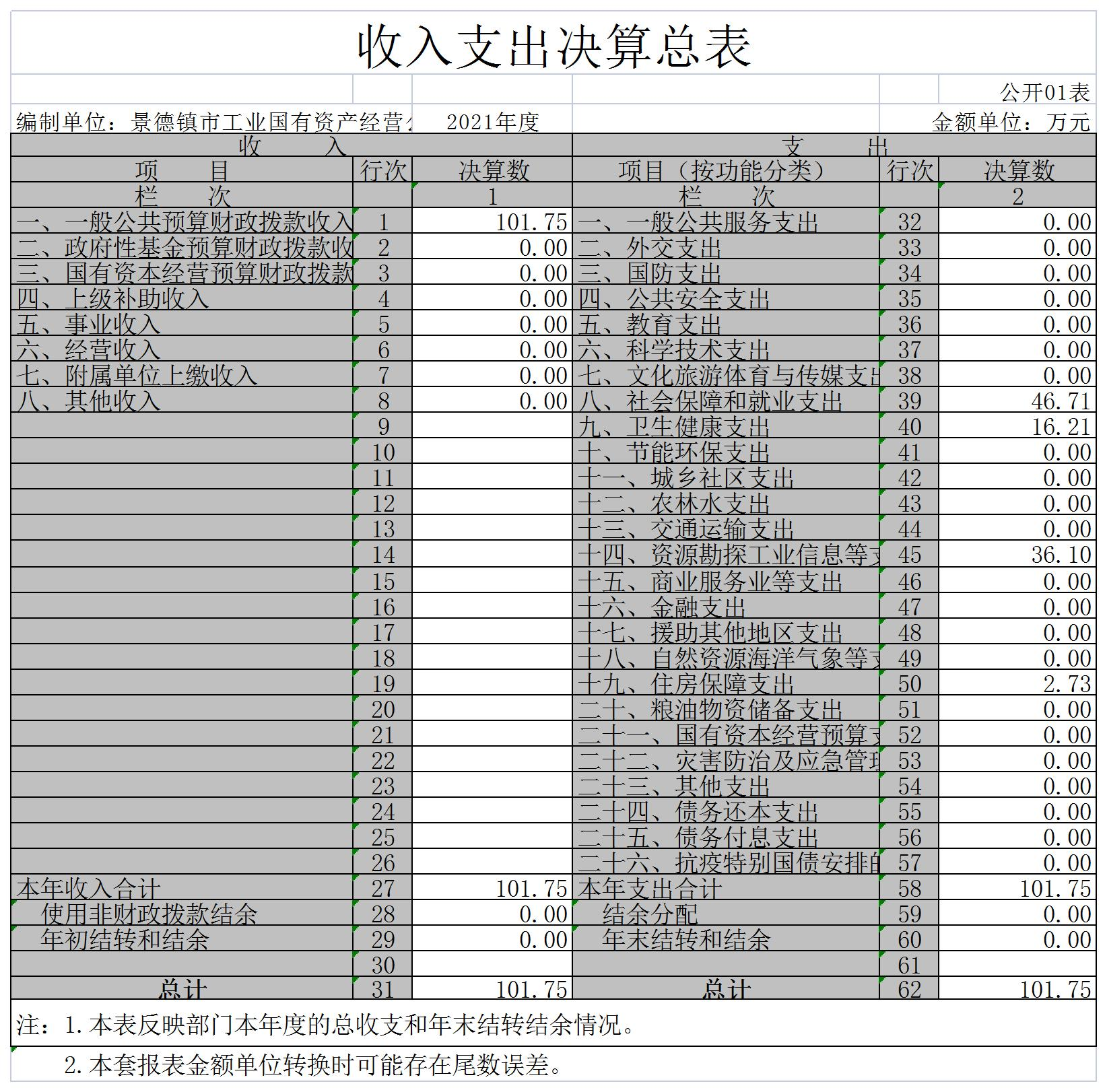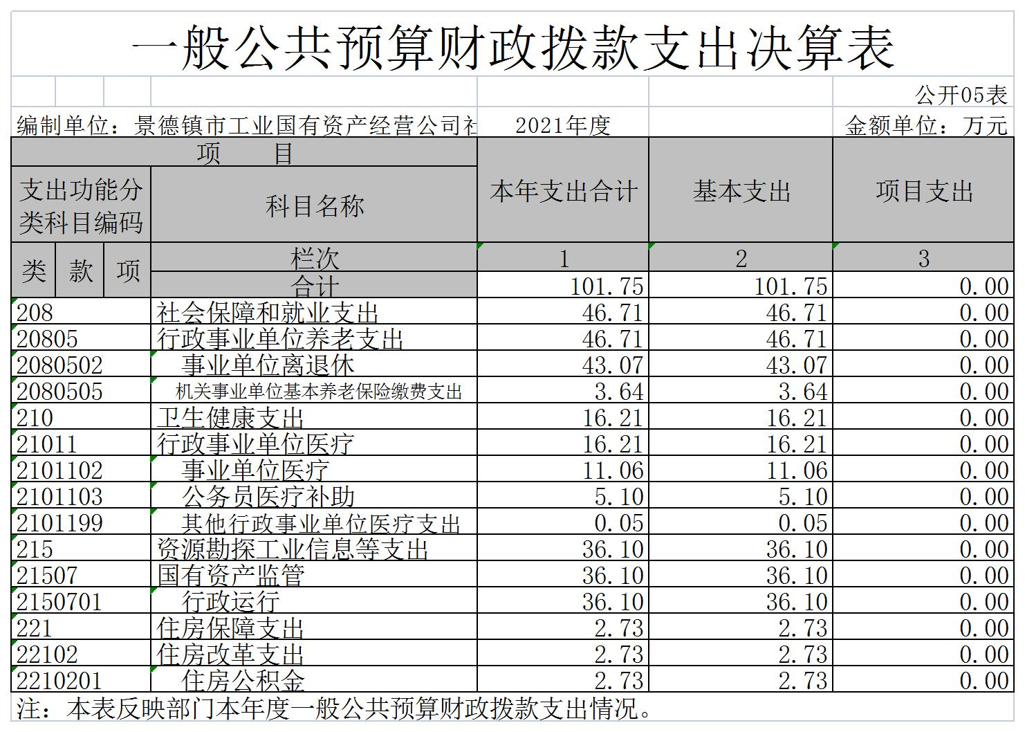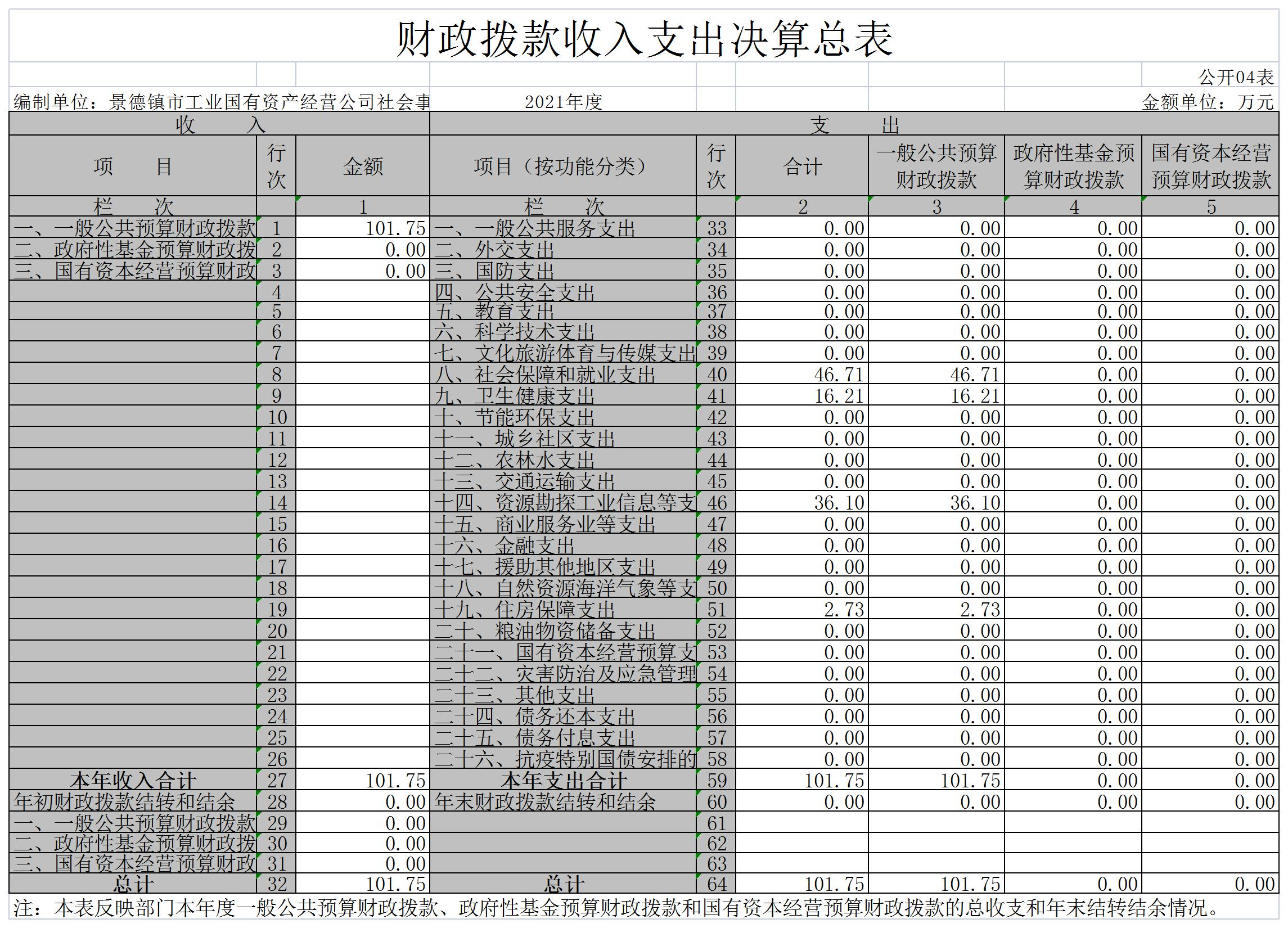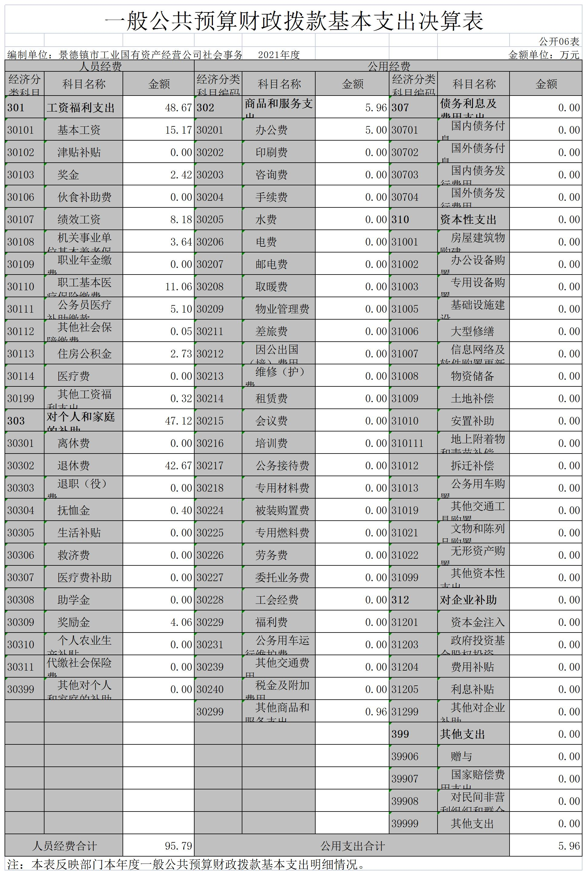 景德镇市工业国有资产经营公司社会事务管理中心单位2021年度决算
