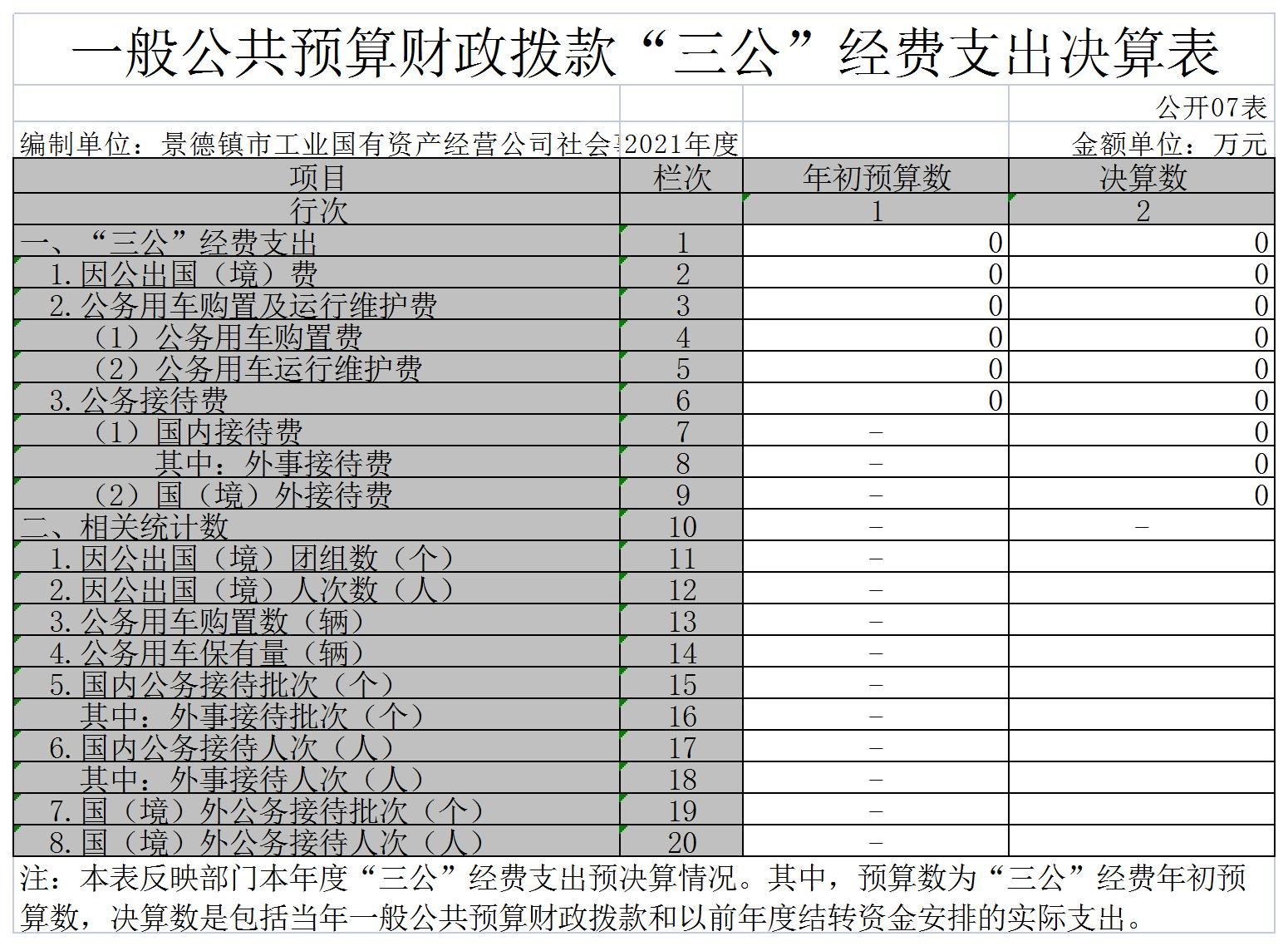 本单位2021年度一般公共预算财政拨款“三公”经费支出年初预算数为 0万元,决算数为 0万元,完成预算的 0 %,决算数较2020年增加(减少)0 万元,增长(下降)0 %,其中: