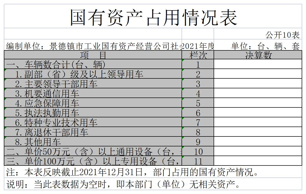 十、国有资产占用情况表