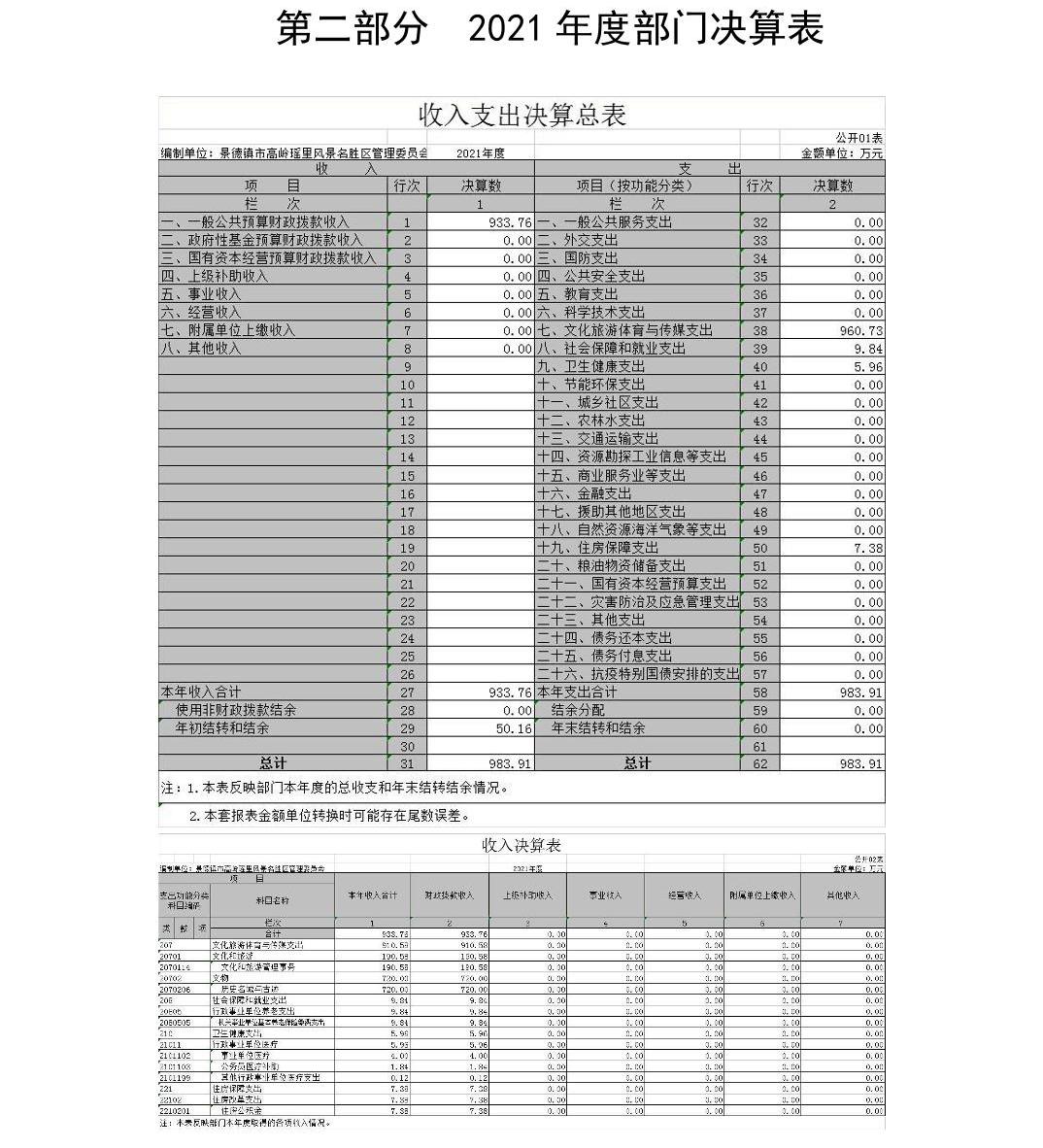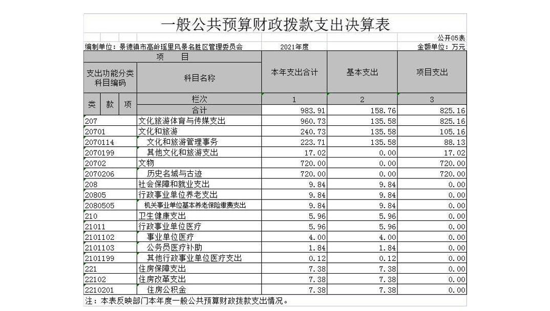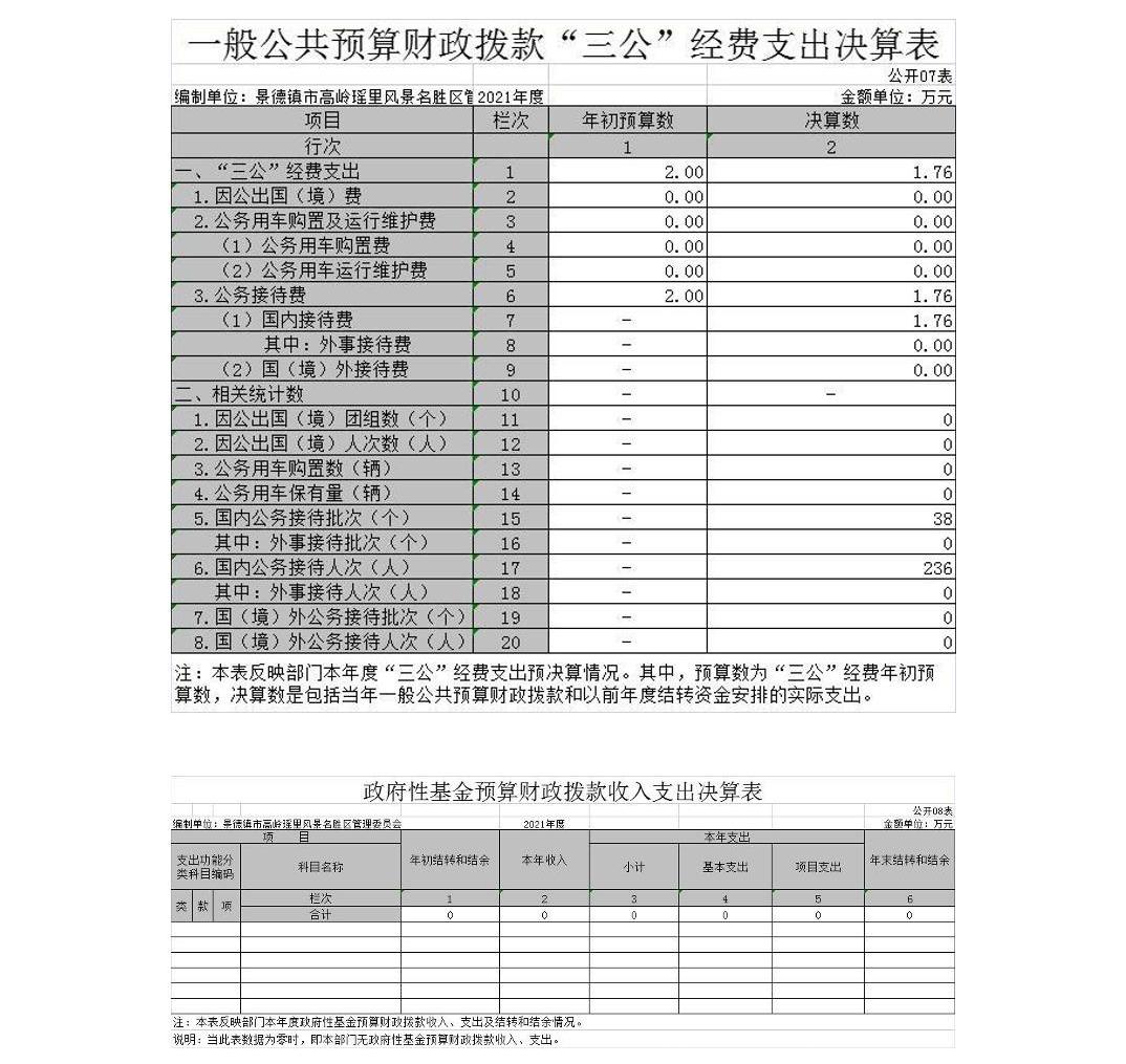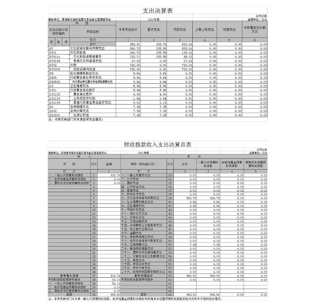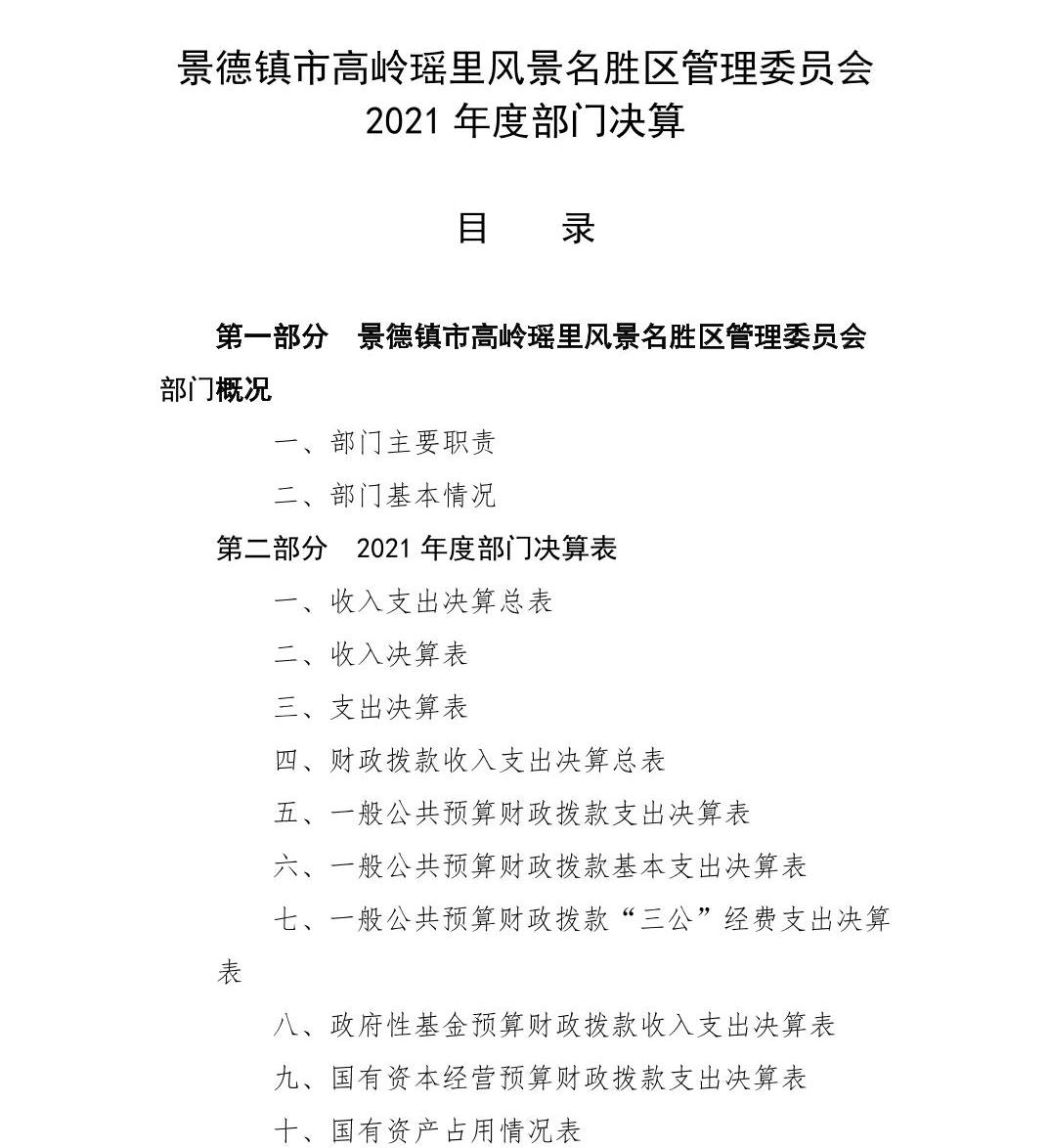 景德镇市高岭瑶里风景名胜区管理委员会2021年度部门决算