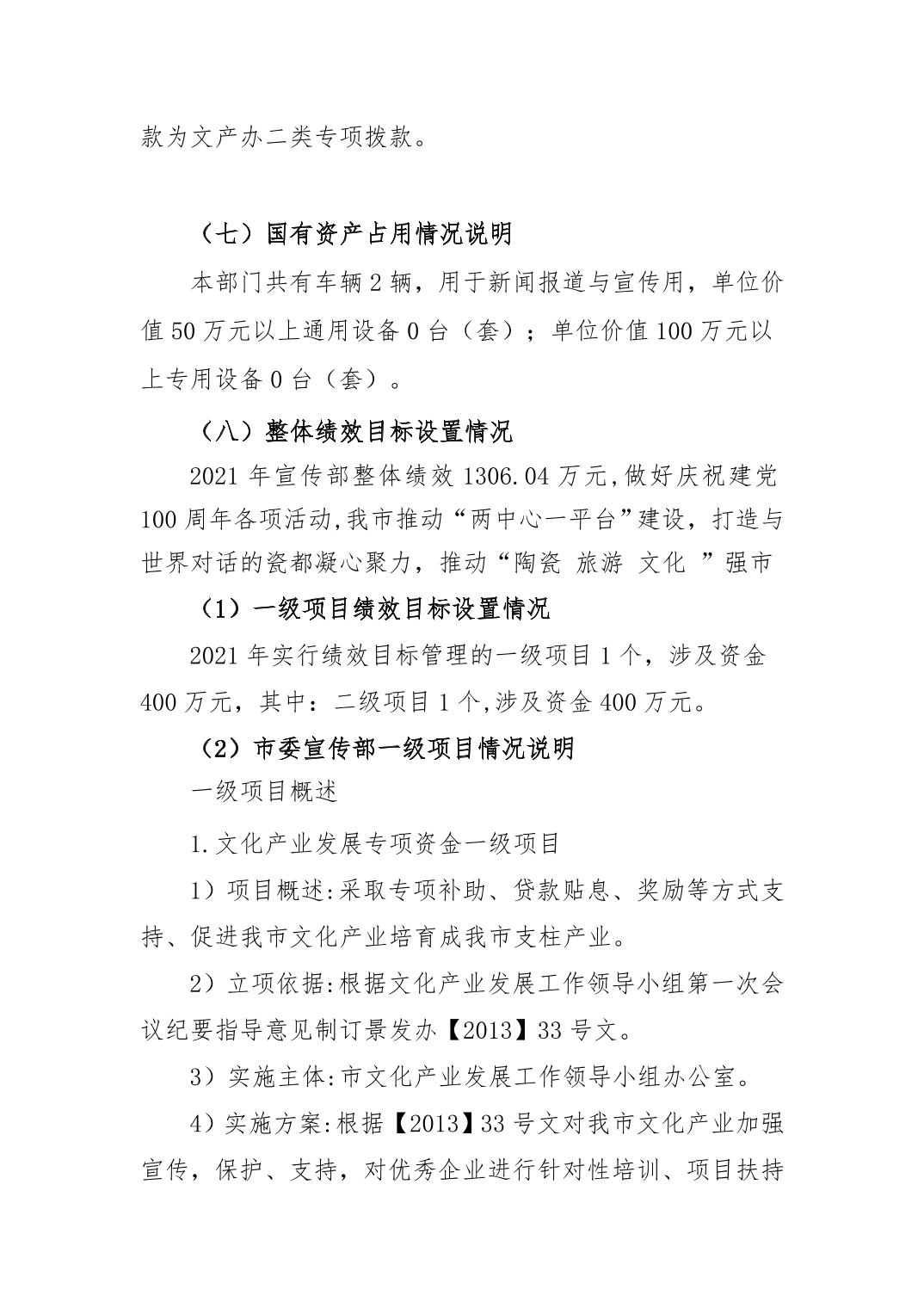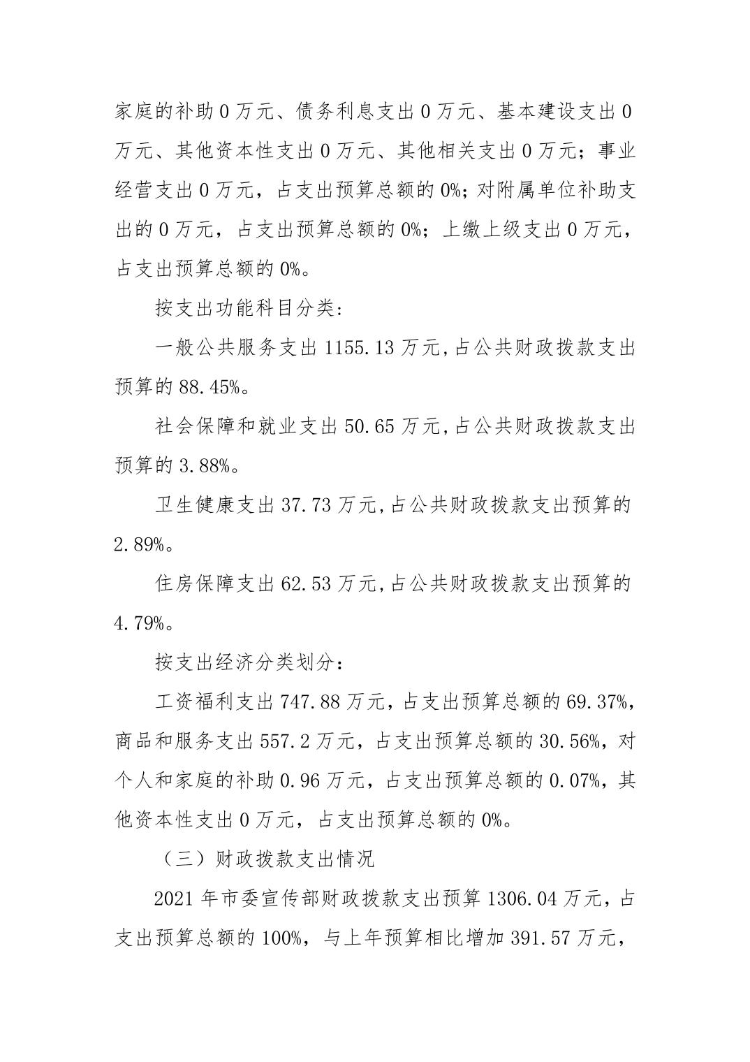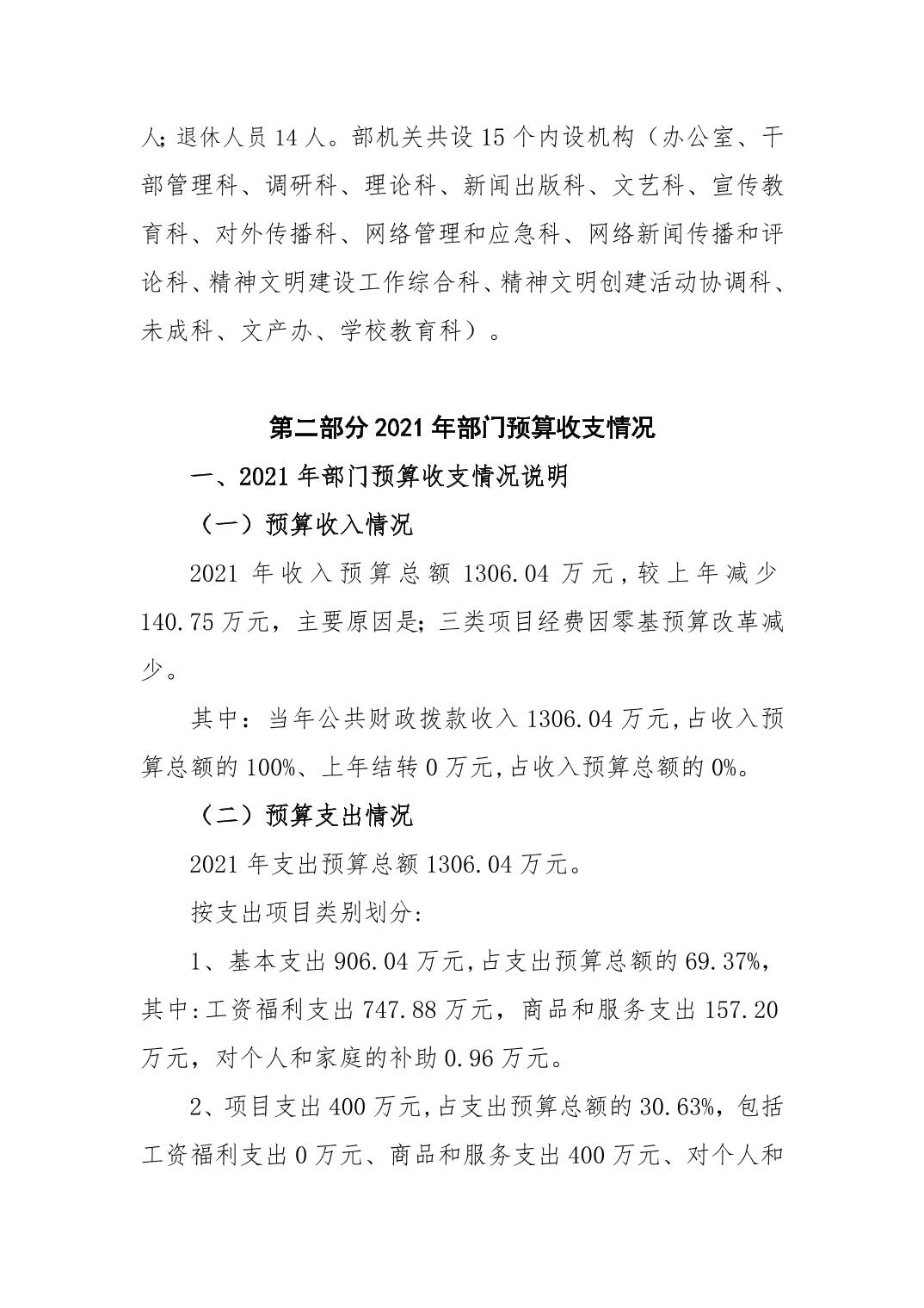 市委宣传部 2021年度部门预算公开说明