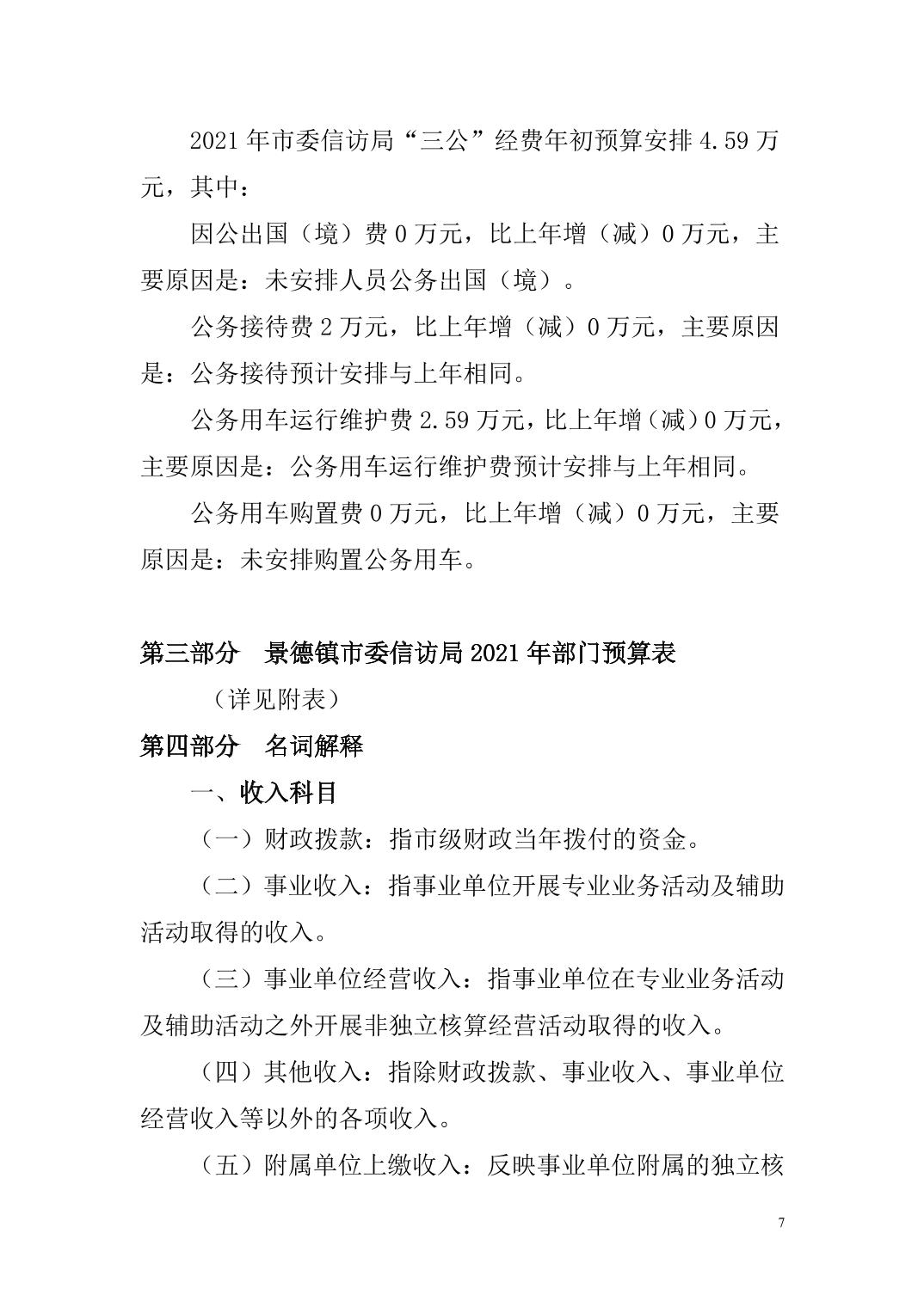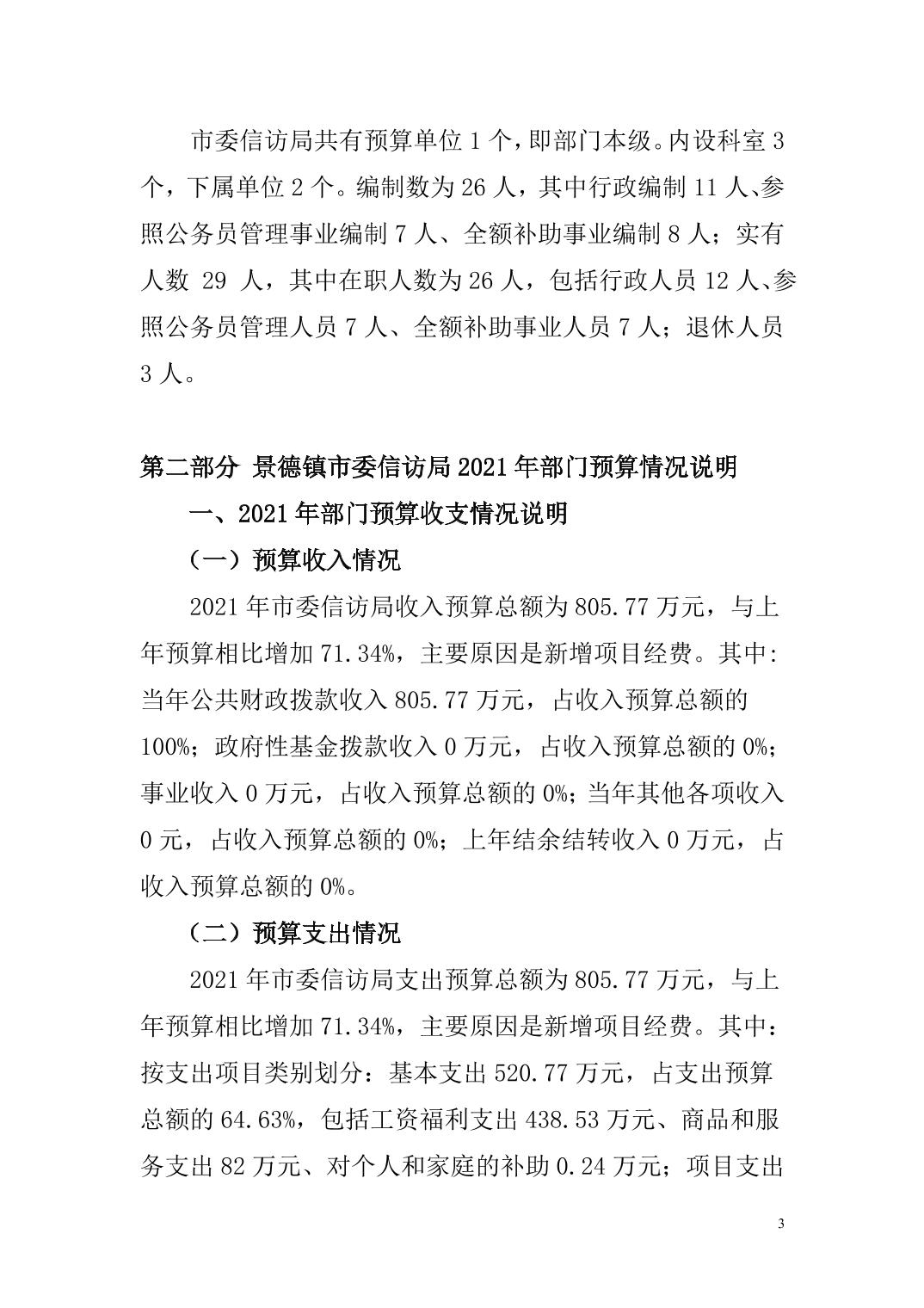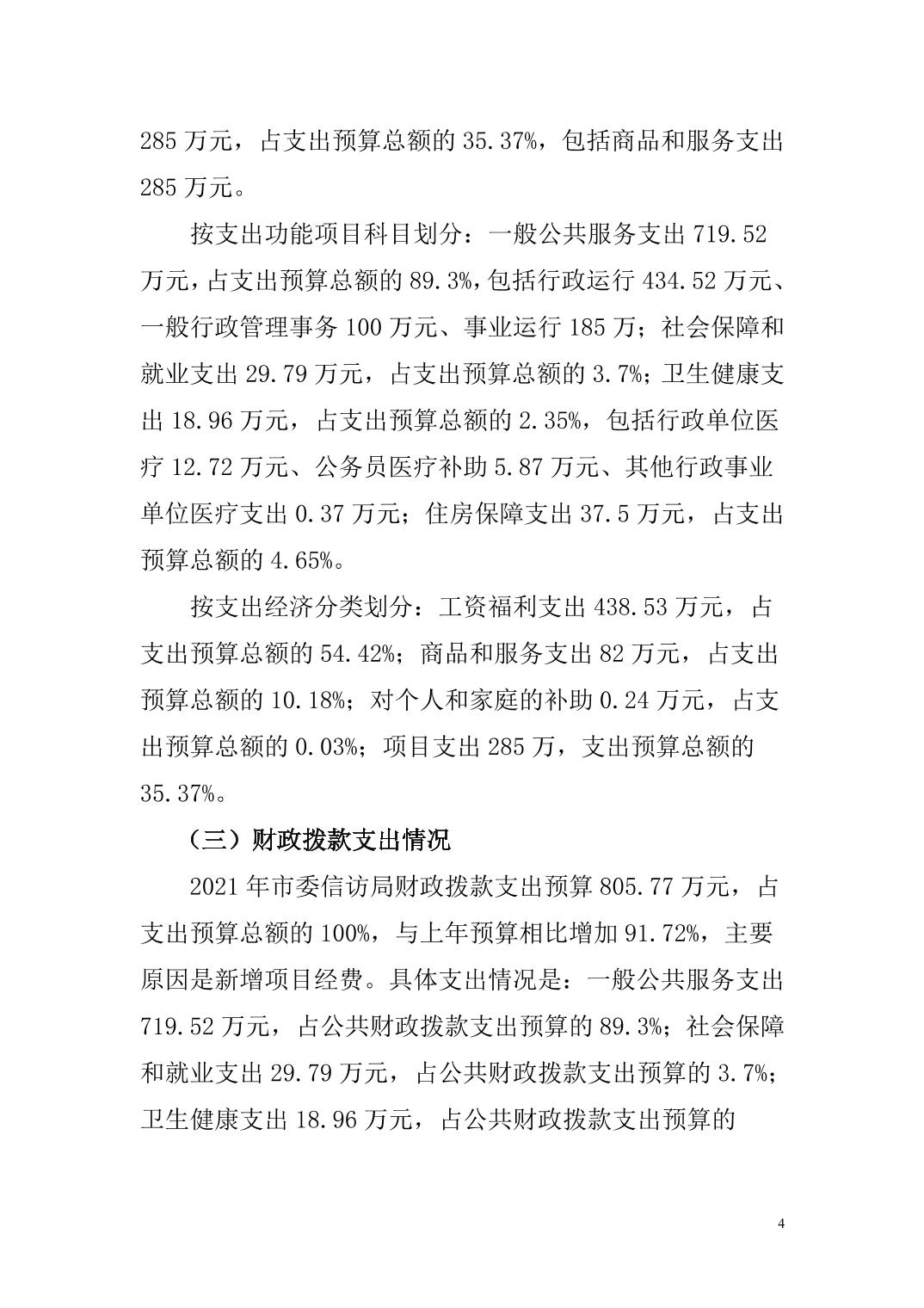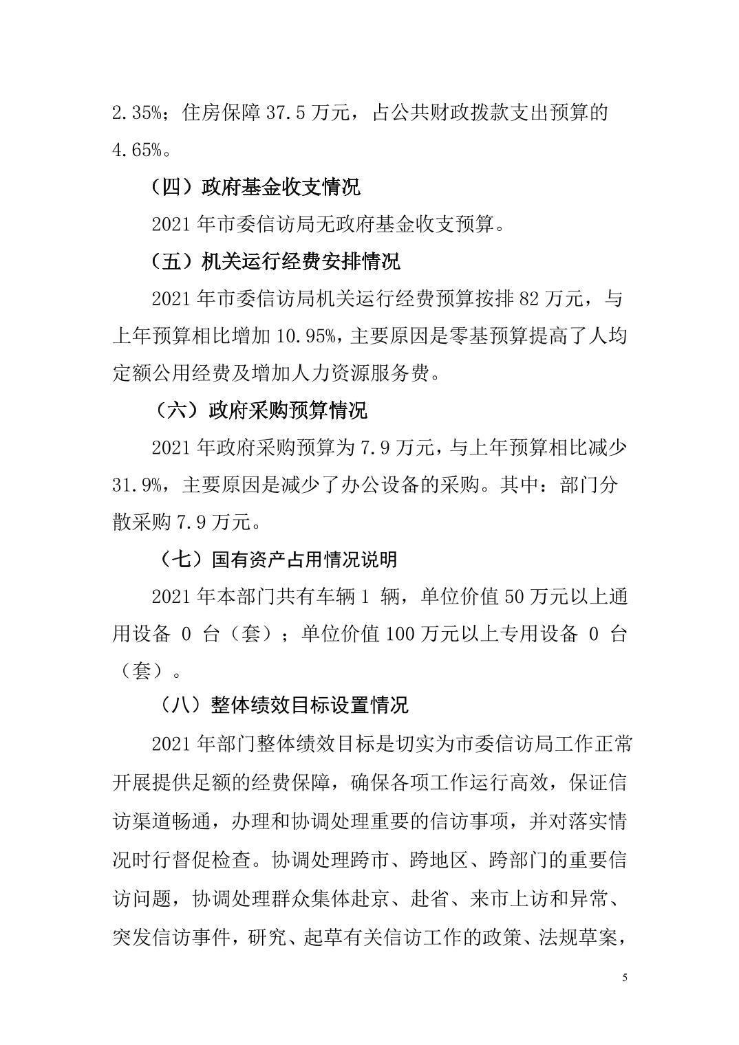 市委信访局 2021年度部门预算公开说明