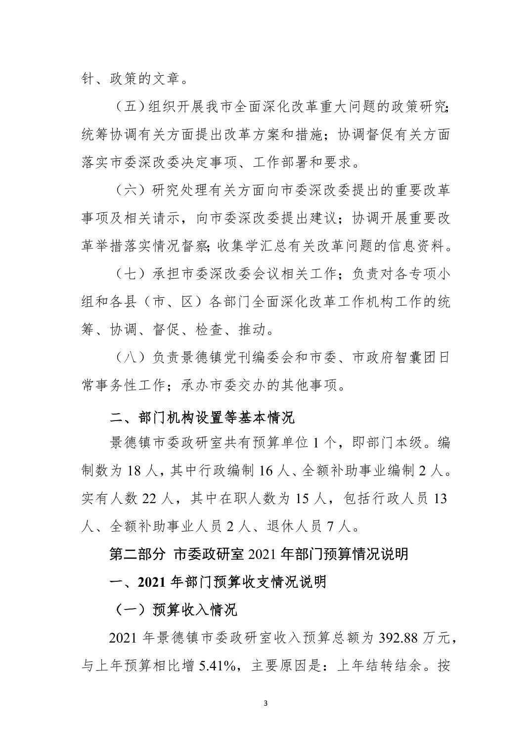 市委政研室 2021年度部门预算公开说明