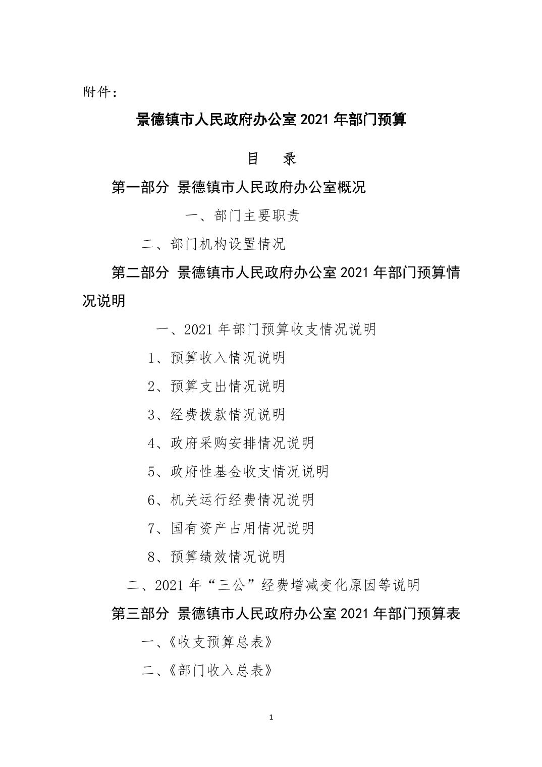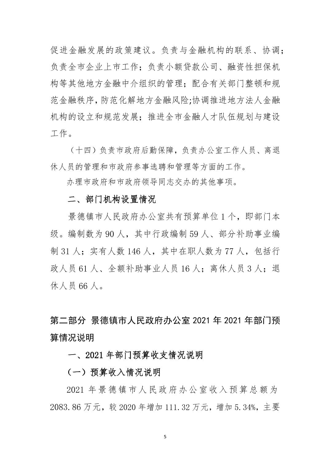 市政府办2021年度部门预算公开说明