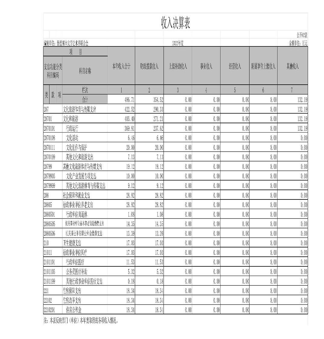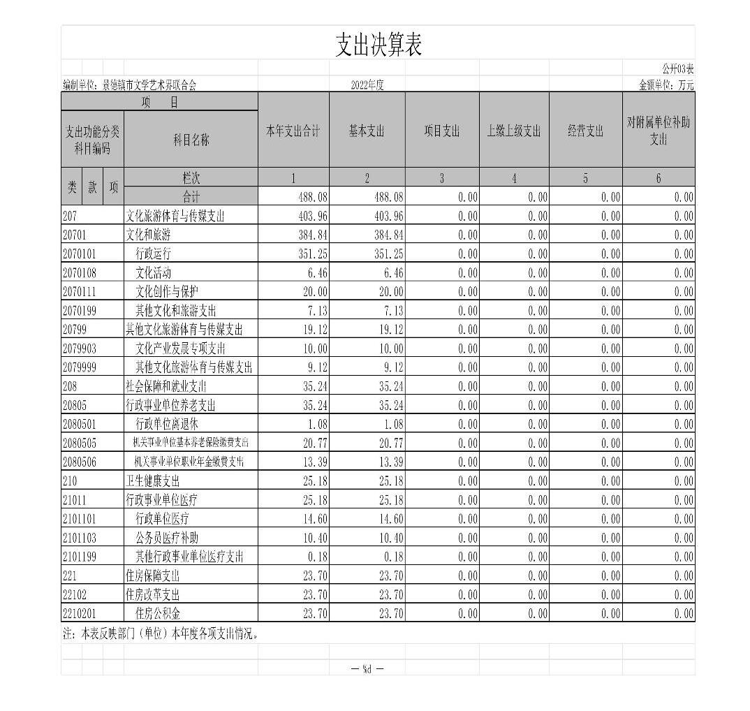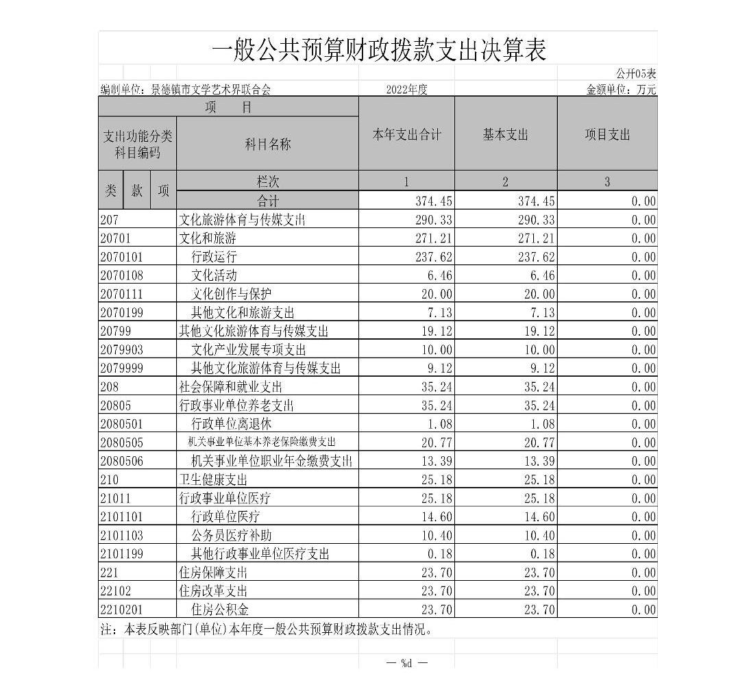 景德镇市文学艺术界联合会单位2022年度决算