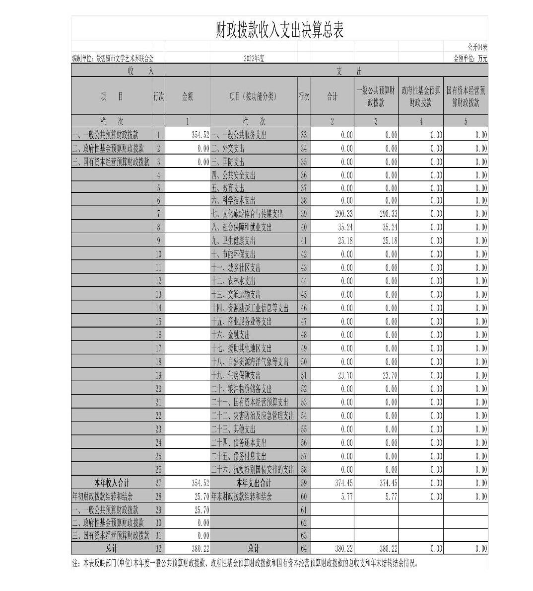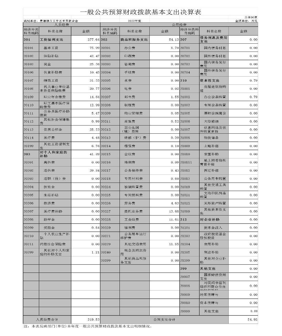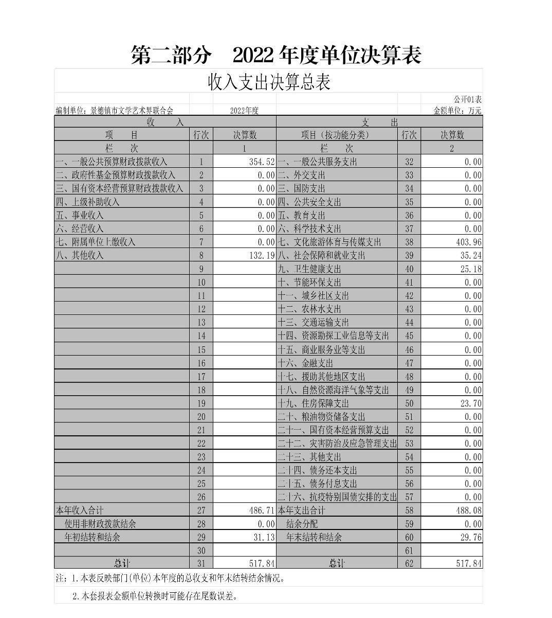 景德镇市文学艺术界联合会单位2022年度决算