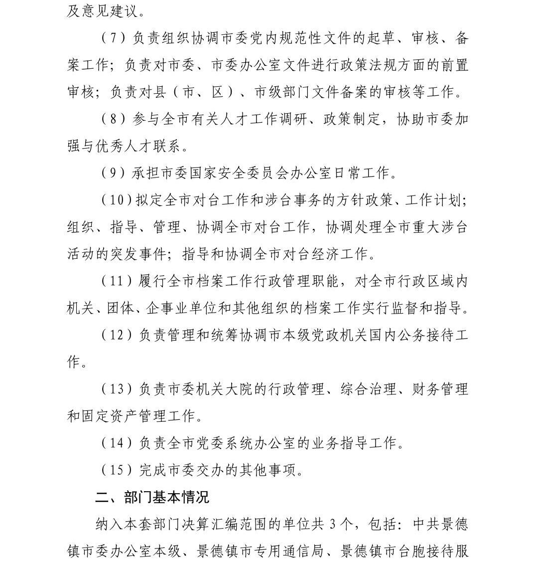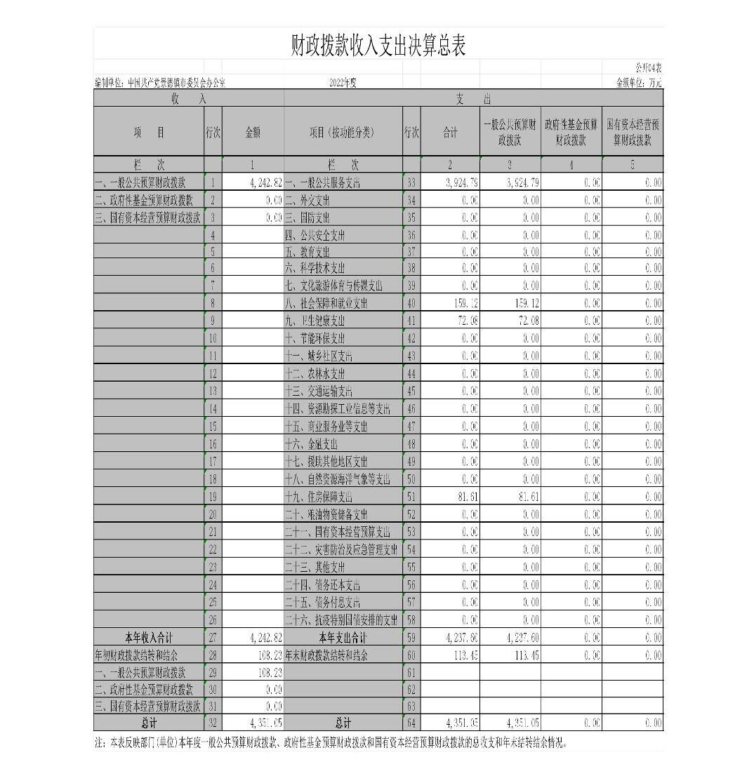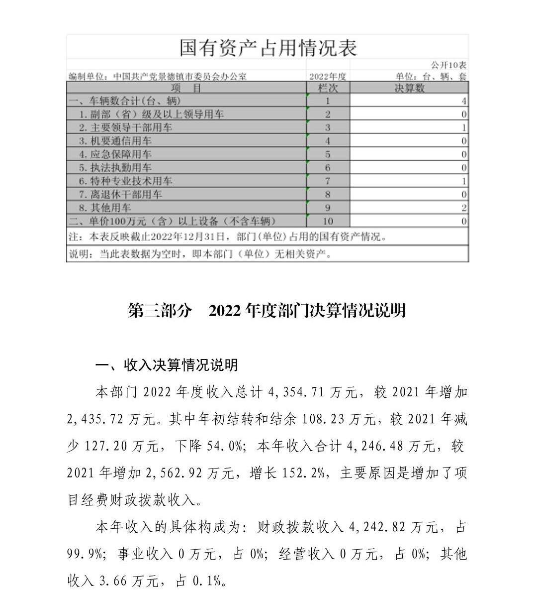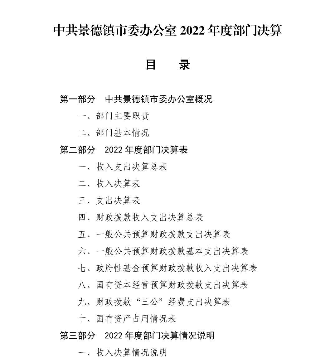 中国共产党景德镇市委员会办公室2022年度部门决算