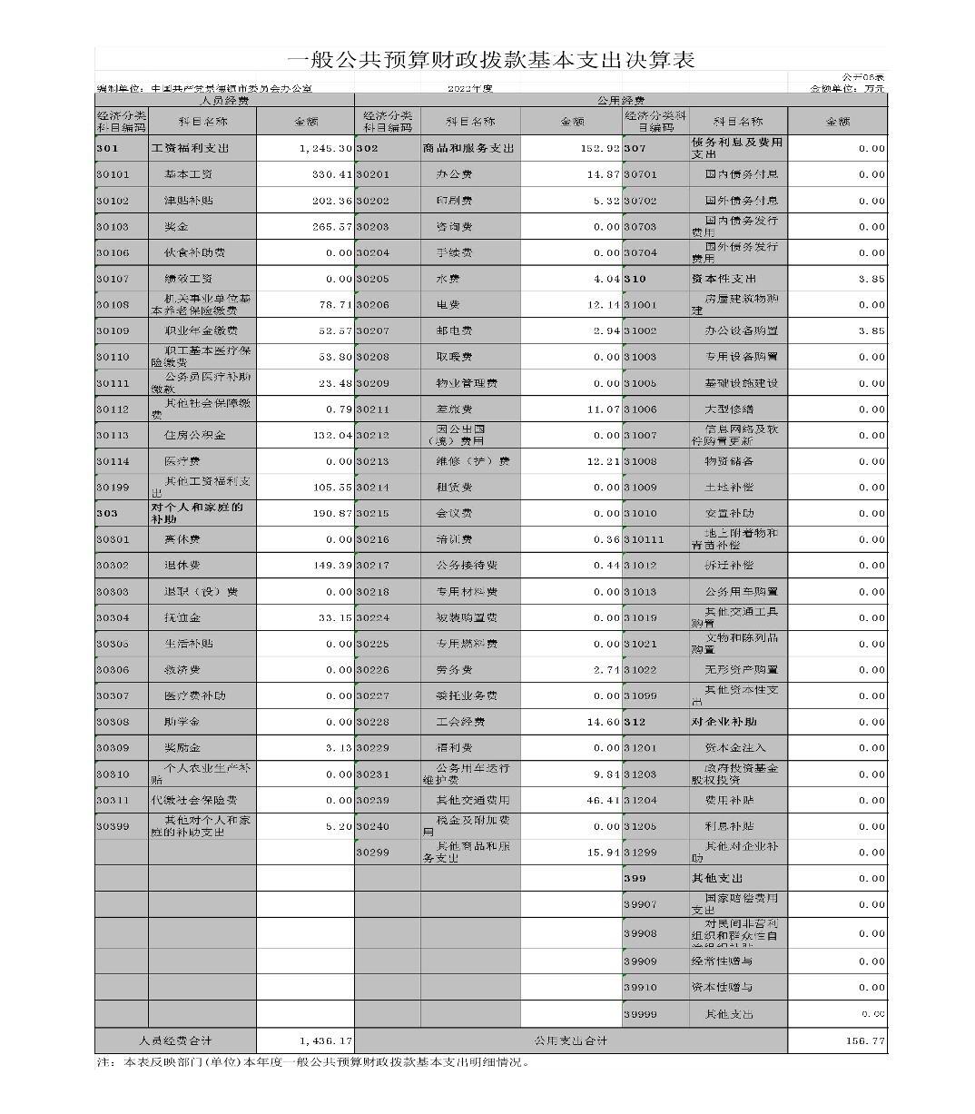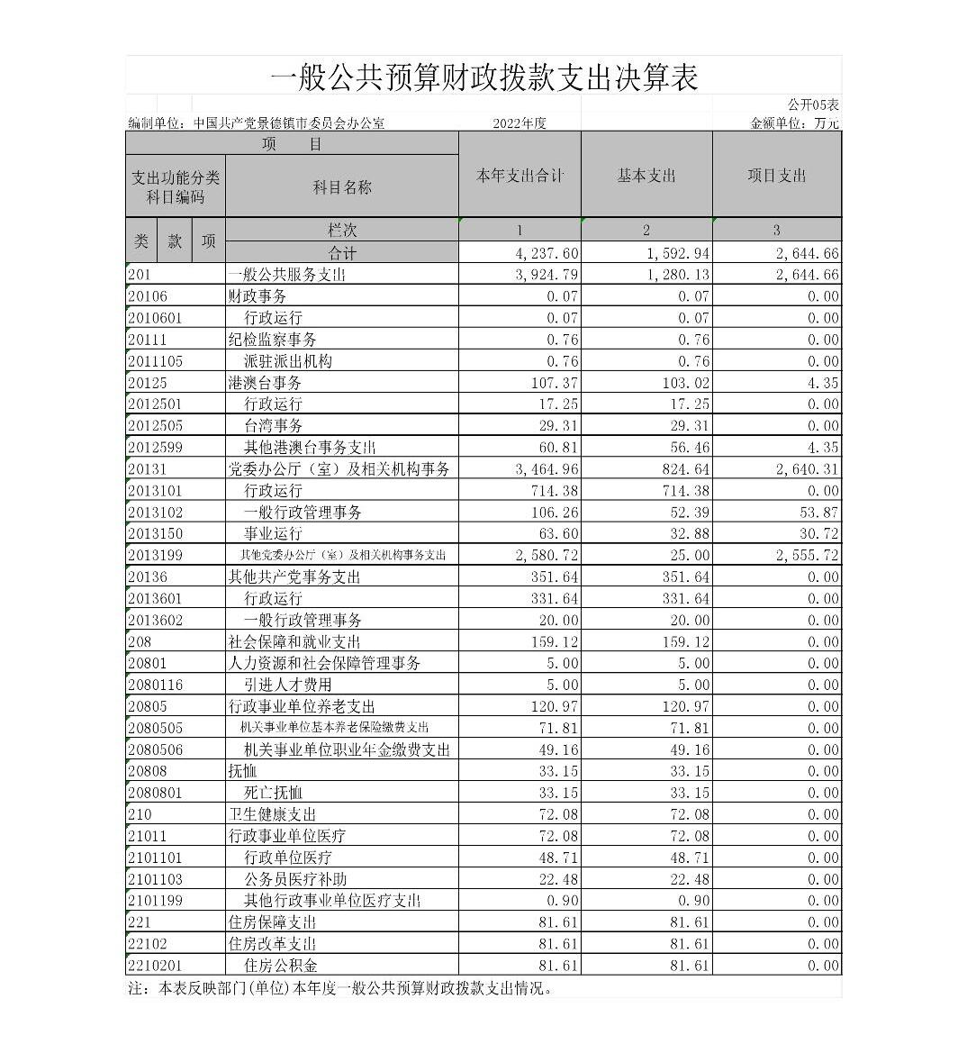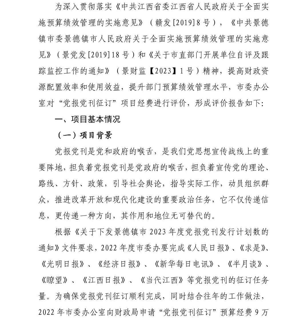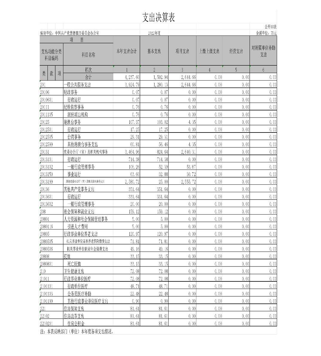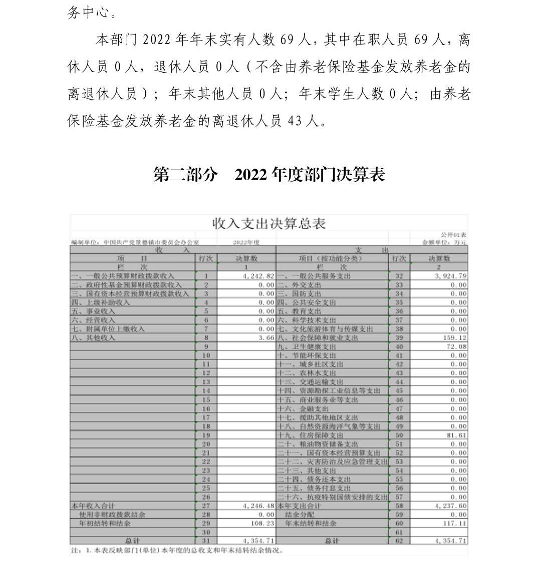 中国共产党景德镇市委员会办公室2022年度部门决算