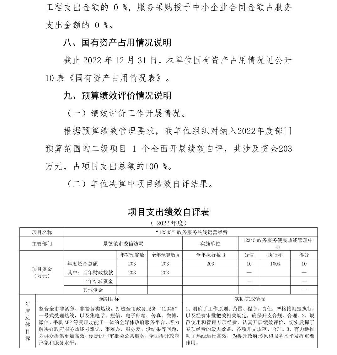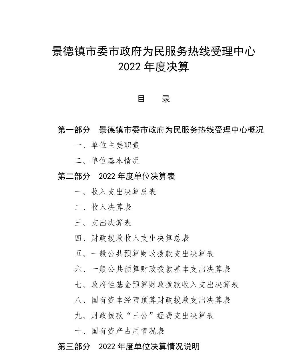 景德镇市委市政府为民服务热线受理中心2022年度决算