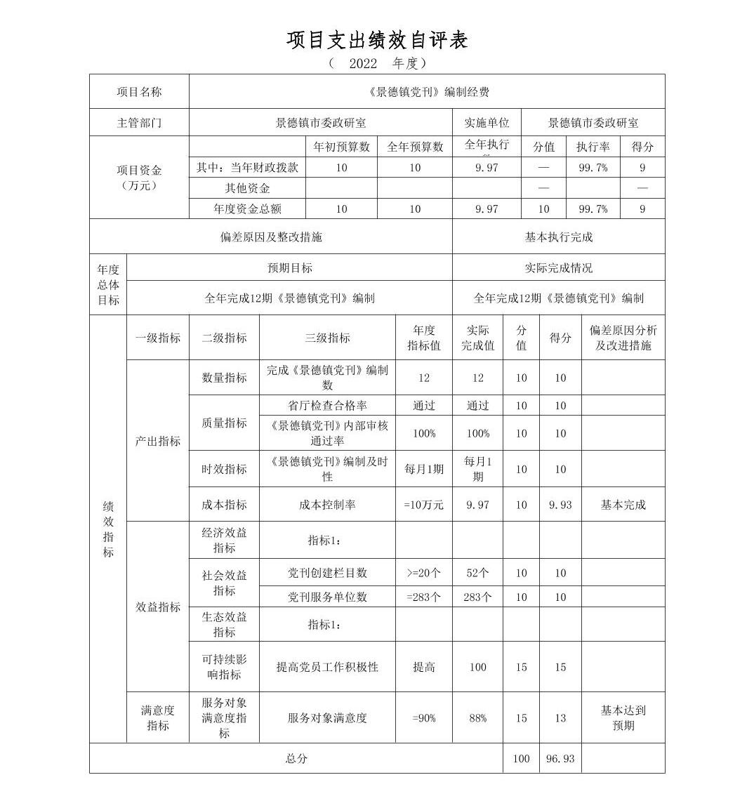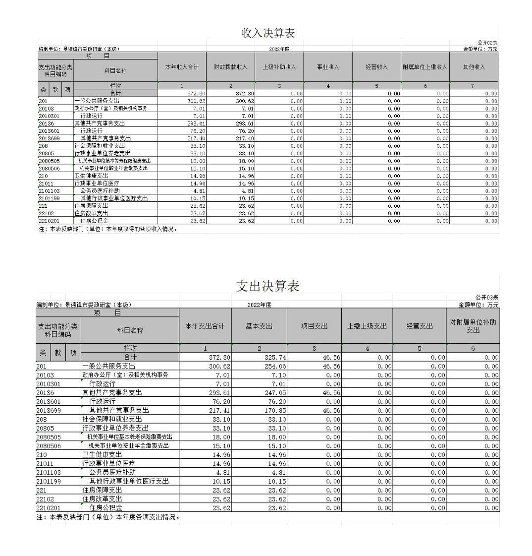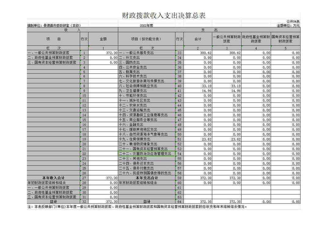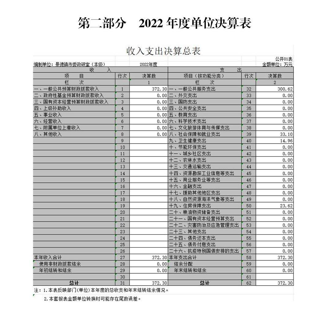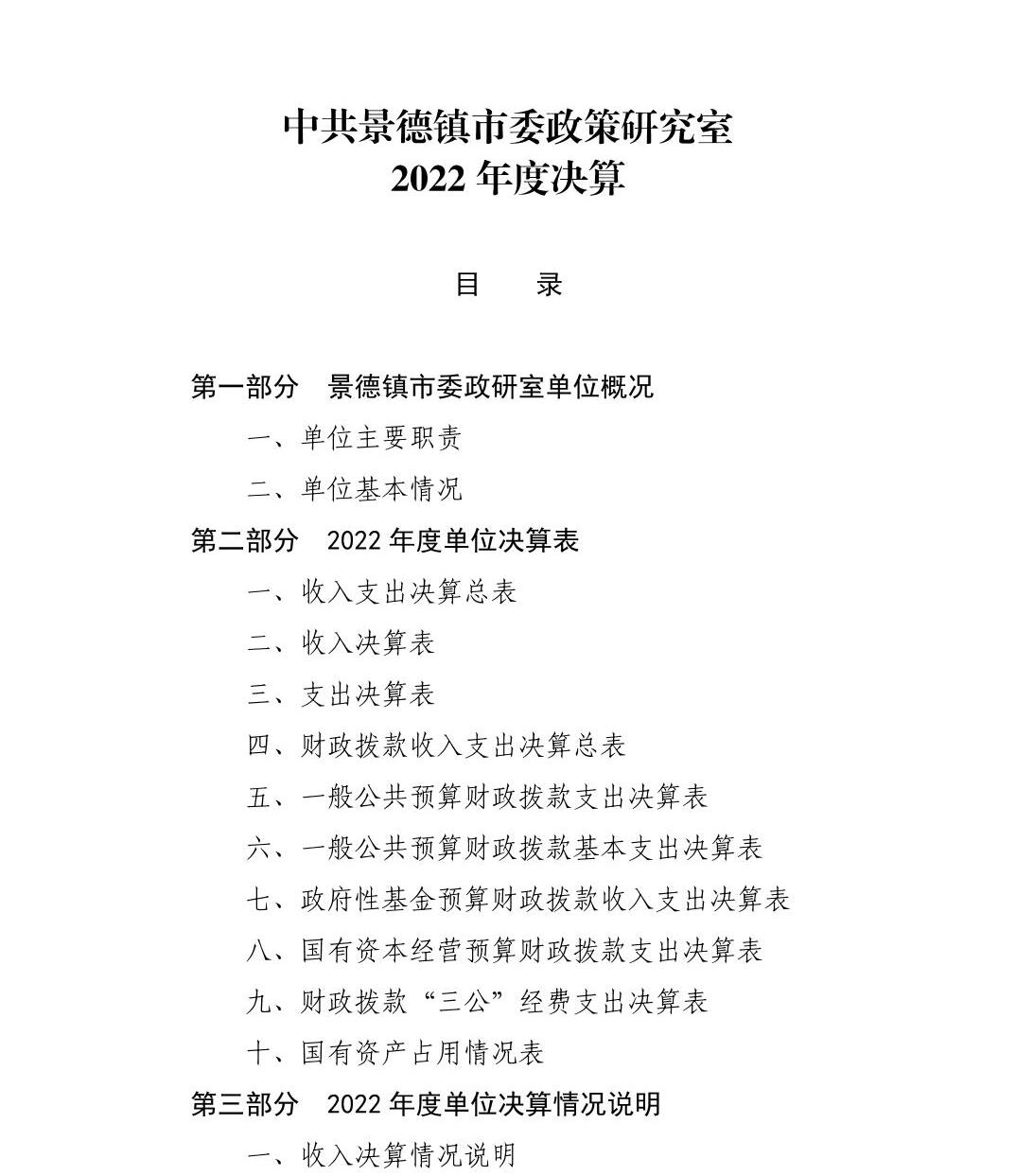 景德镇市委政研室本级2022年度单位决算