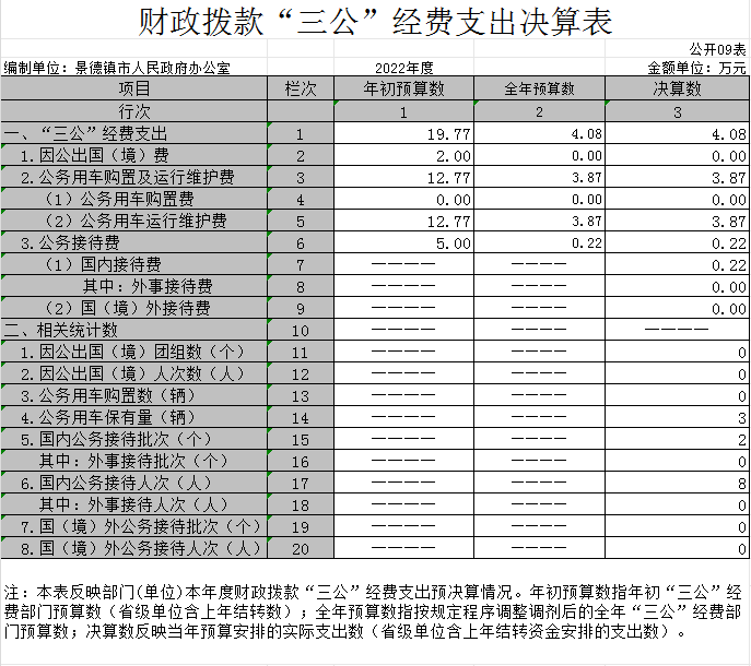 本部门2022年度财政拨款“三公”经费支出全年预算数为19.77万元,决算数为4.08万元,完成全年预算的20.64%,决算数较2021年减少4.53万元,下降52.61%,其中: