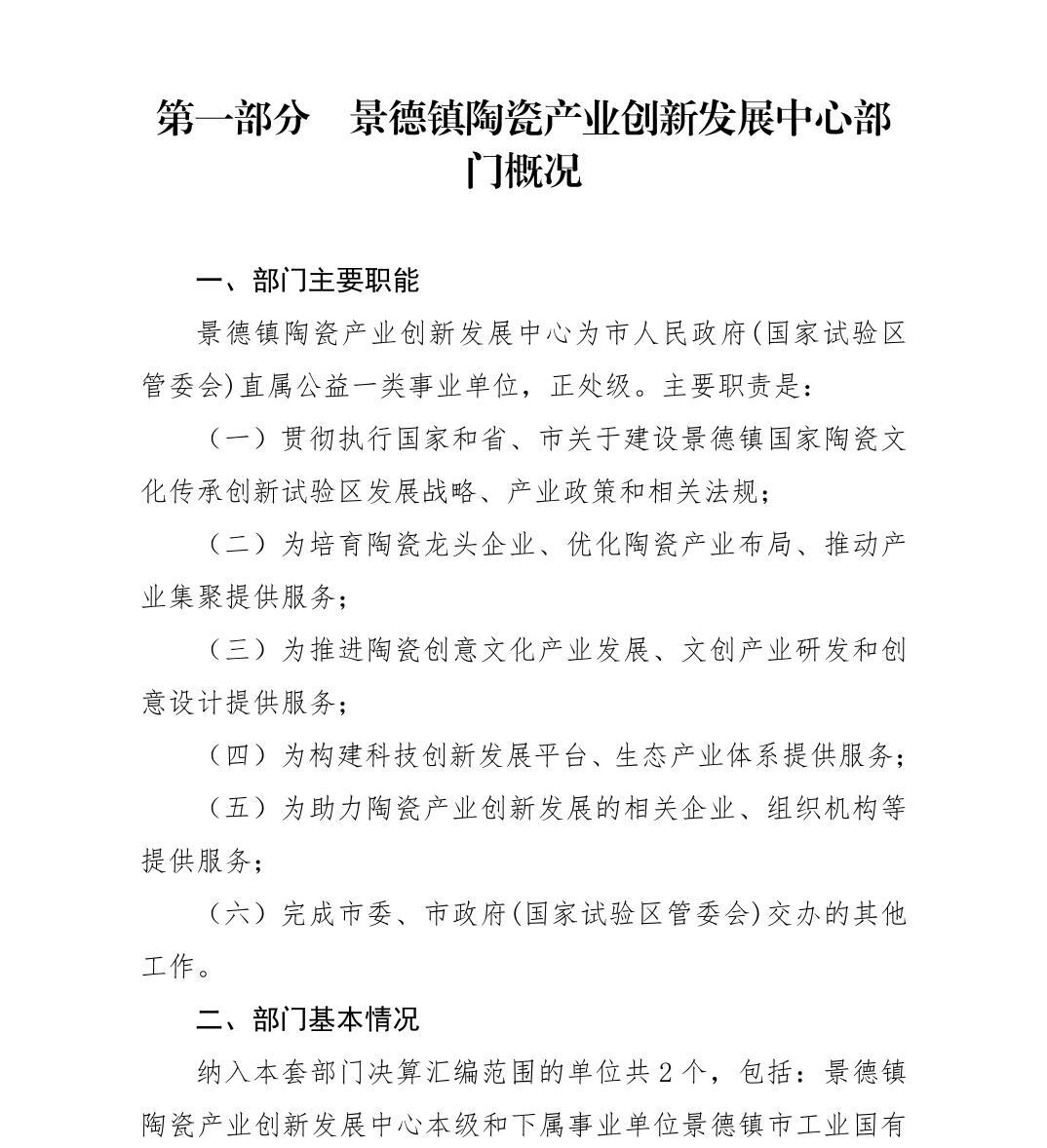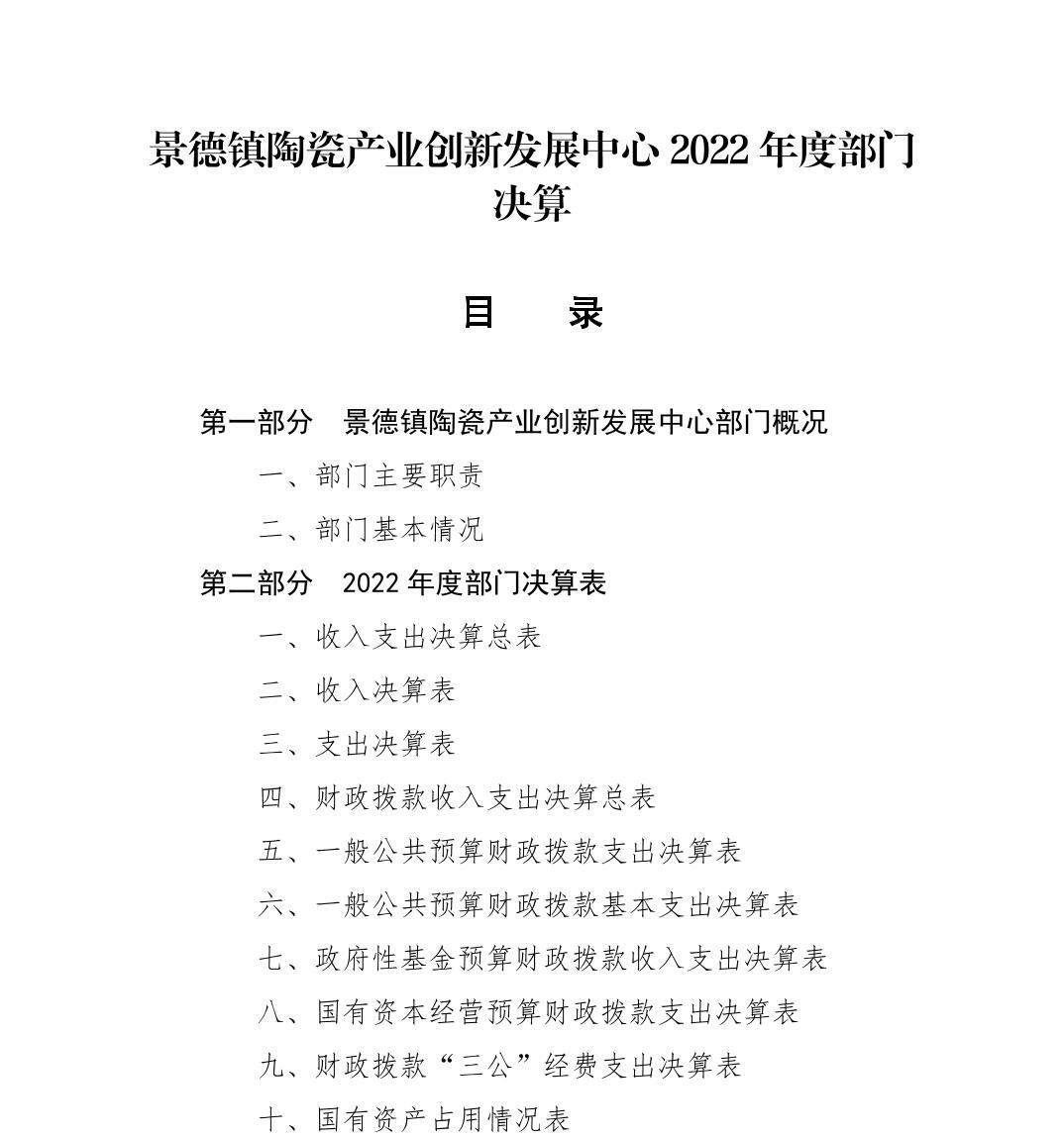 景德镇陶瓷产业创新发展中心2022年度部门决算