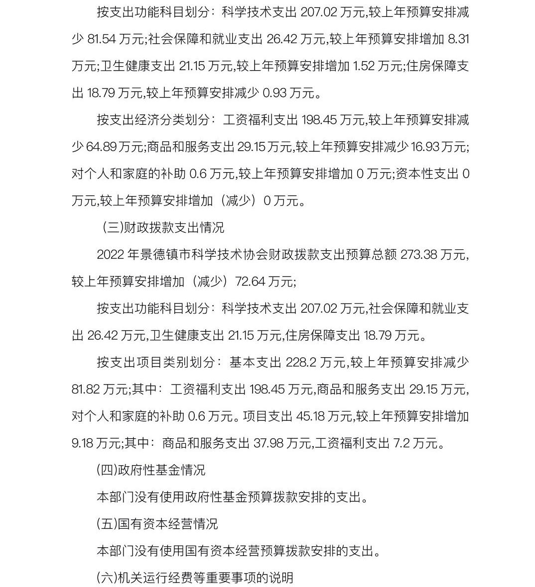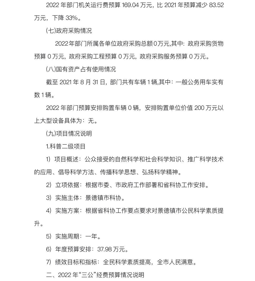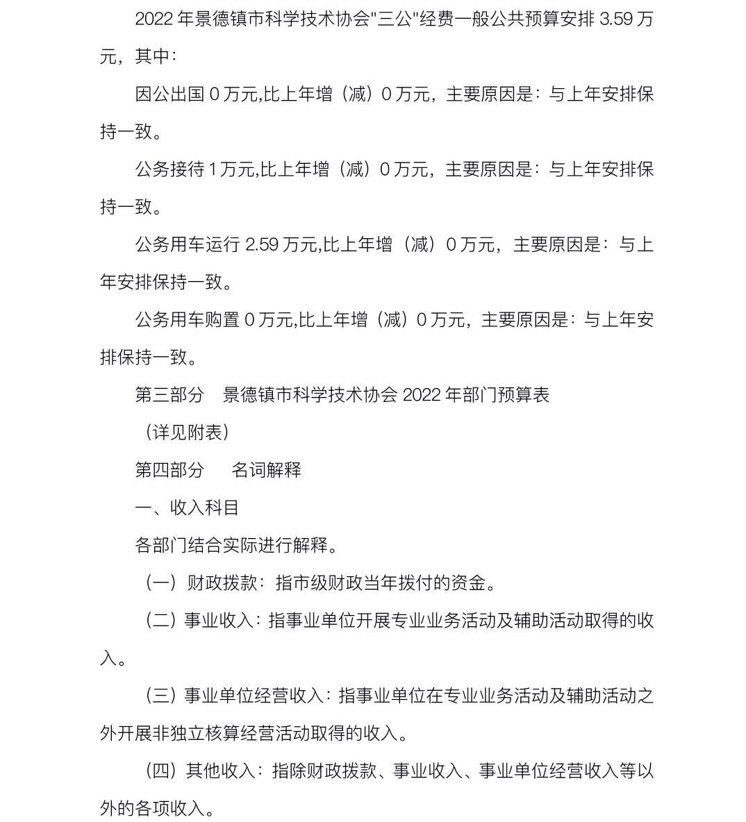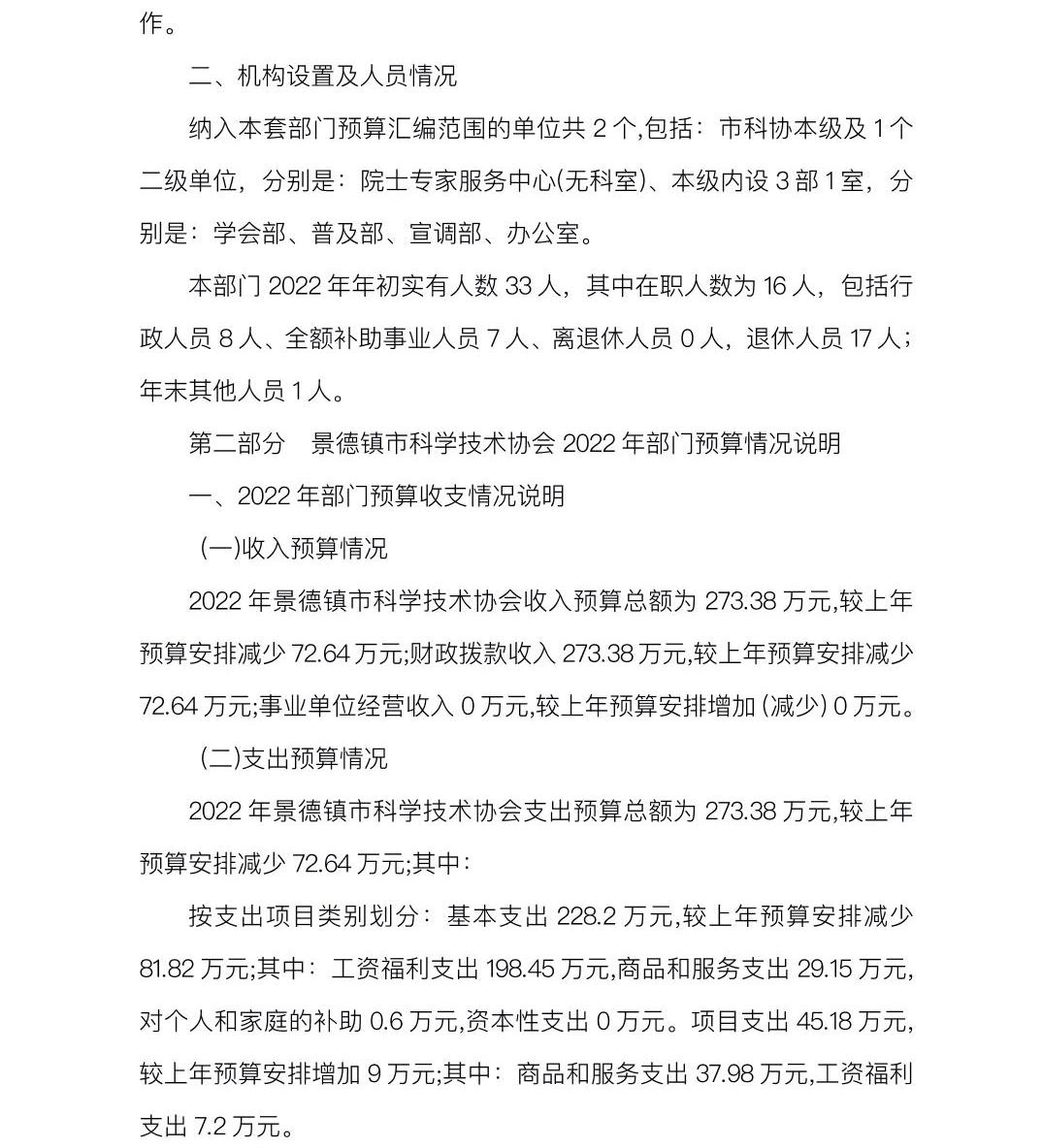 景德镇市科协2022年部门预算编制说明
