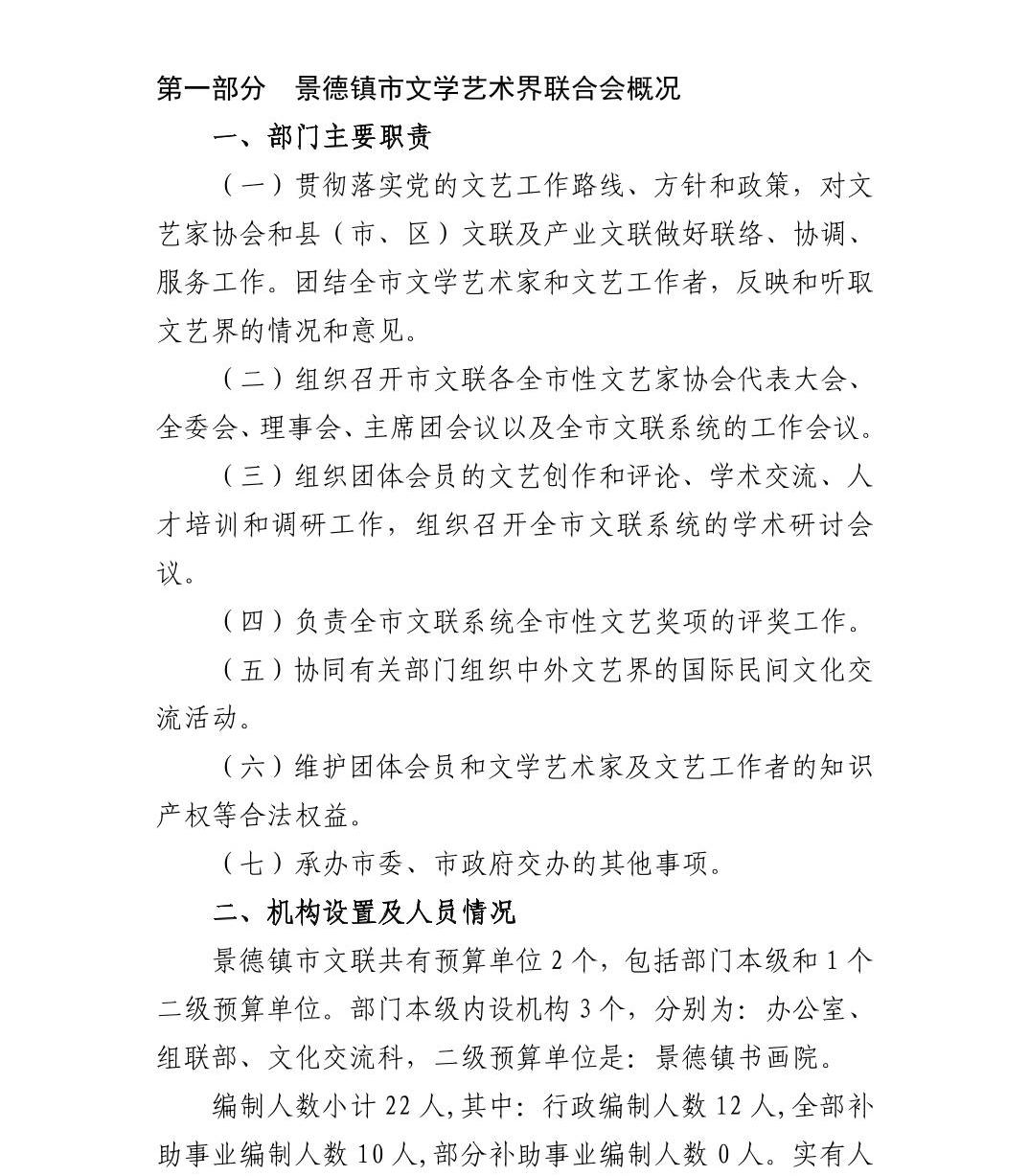 景德镇市文学艺术界联合会2022年部门预算公开