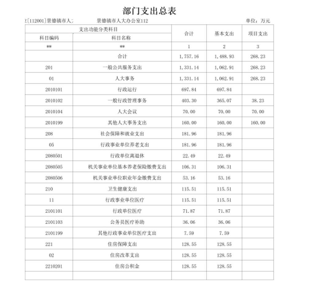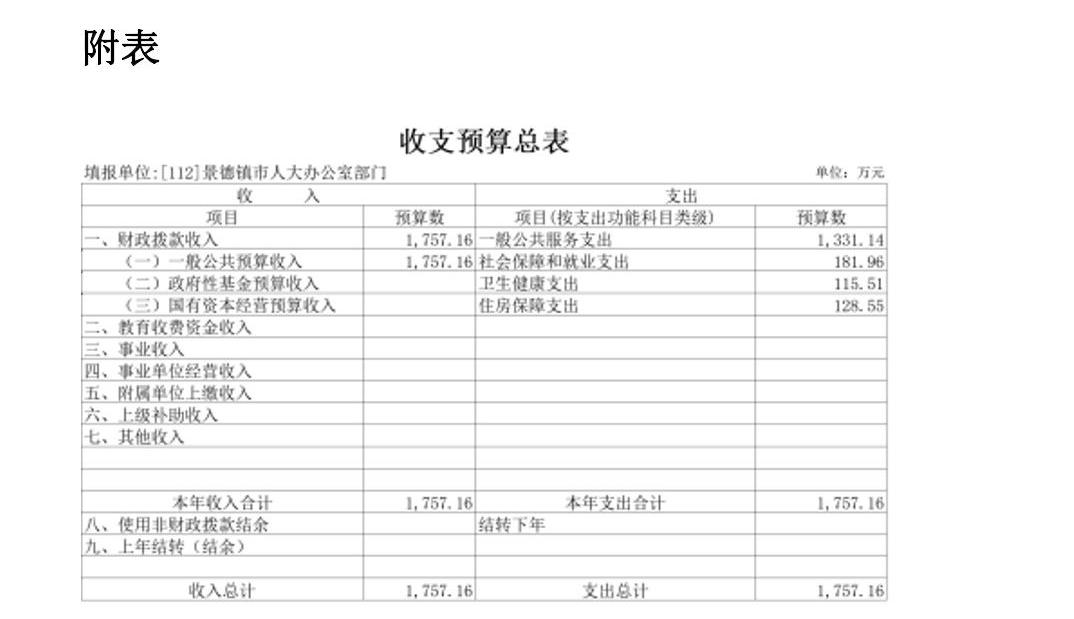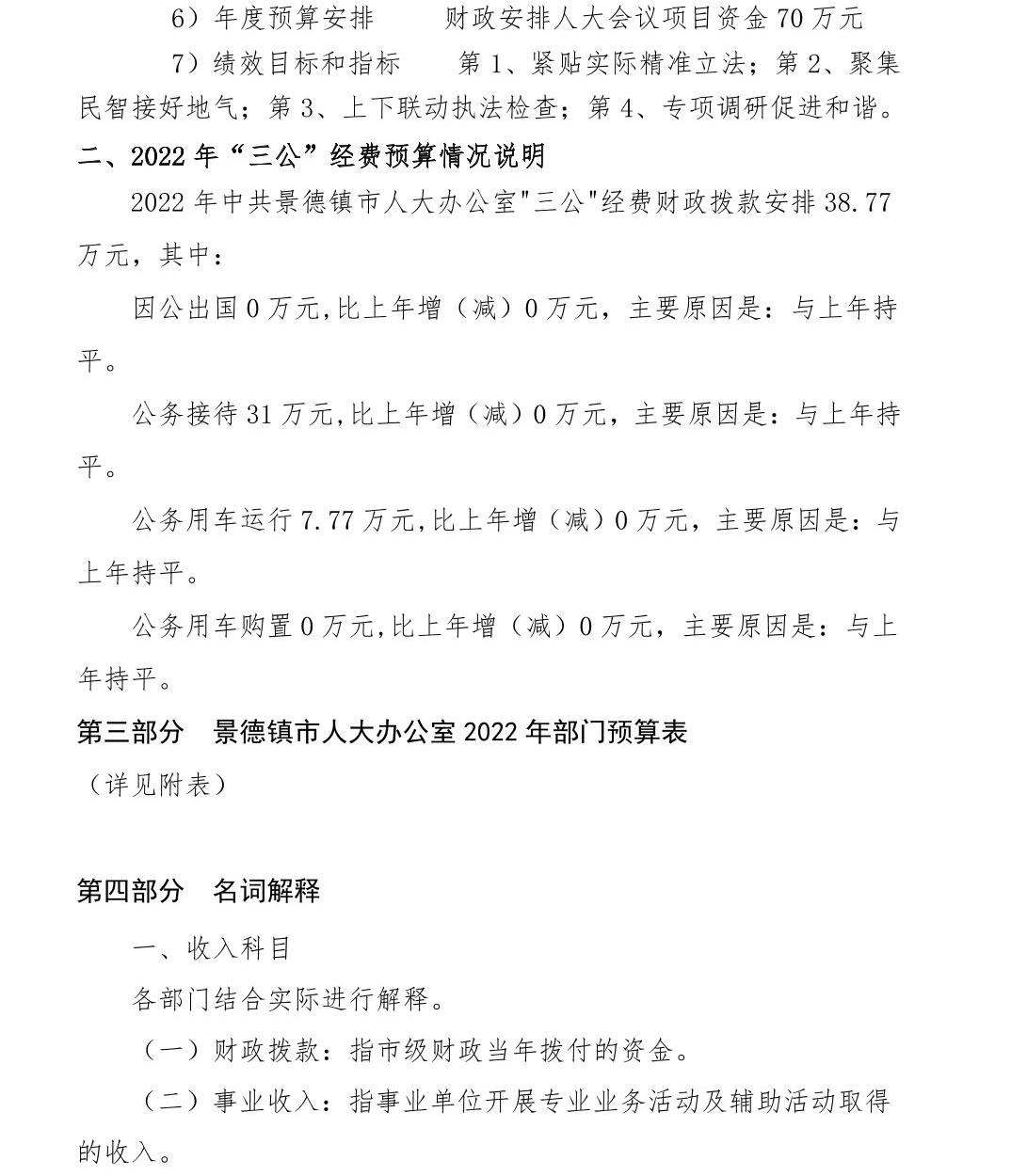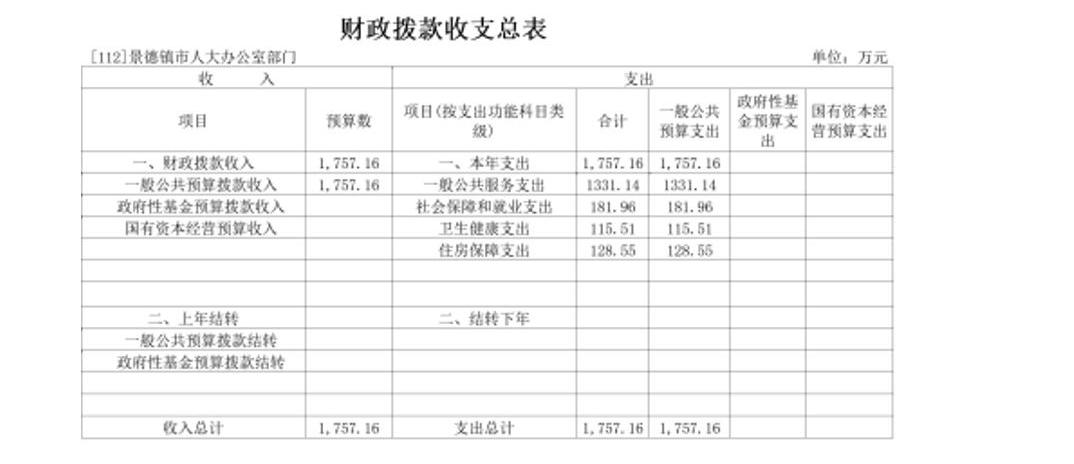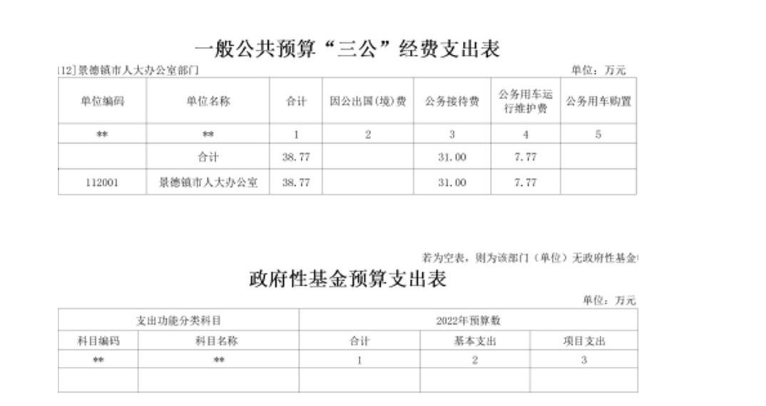 景德镇市人大办公室2022年部门预算公开