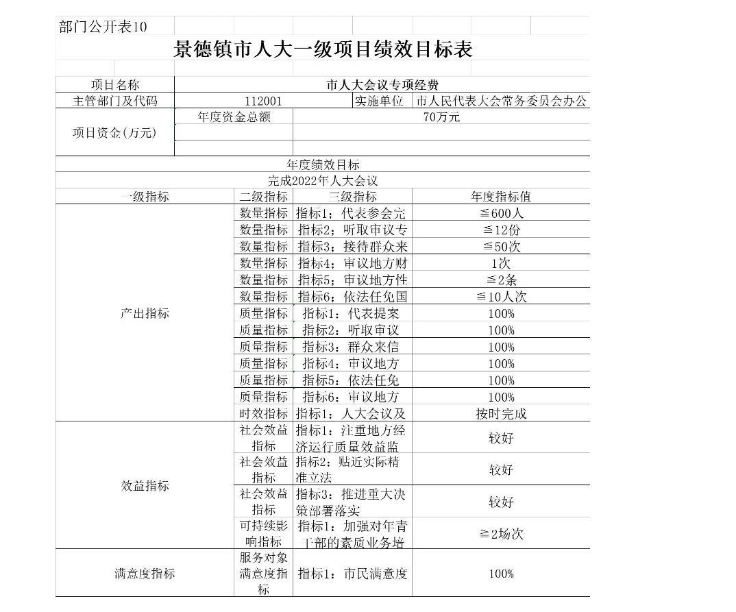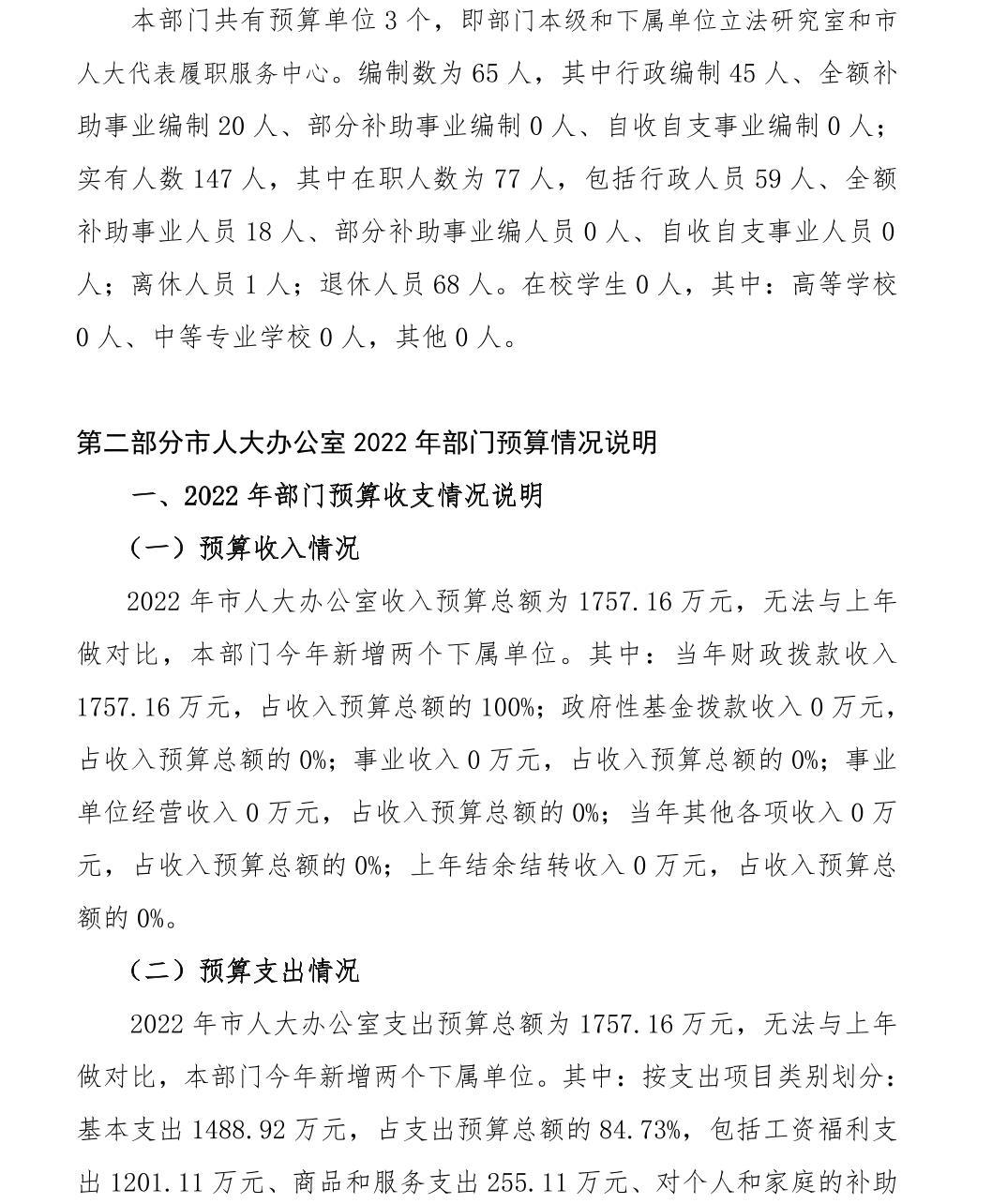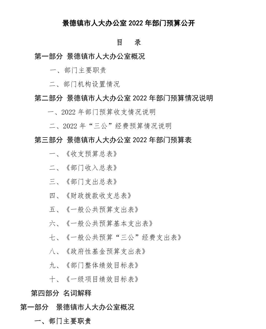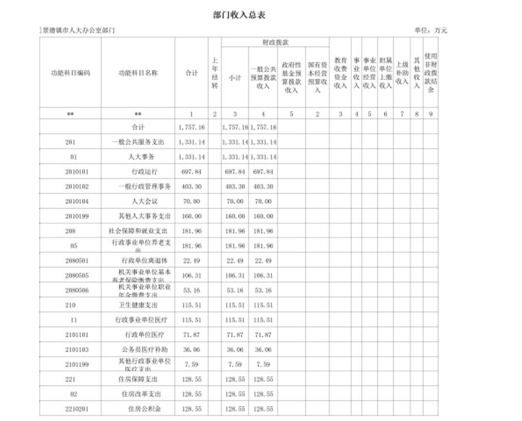 景德镇市人大办公室2022年部门预算公开